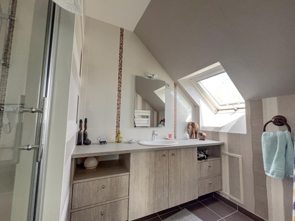 À l’étage, chacun trouvera sa place : trois chambres, toutes équipées de leur propre salle d’eau (dont une avec toilettes), ainsi que deux pièces supplémentaires à aménager selon vos besoins : chambres, bureau, salle de jeux. Un second toilette est accessible sur le palier.