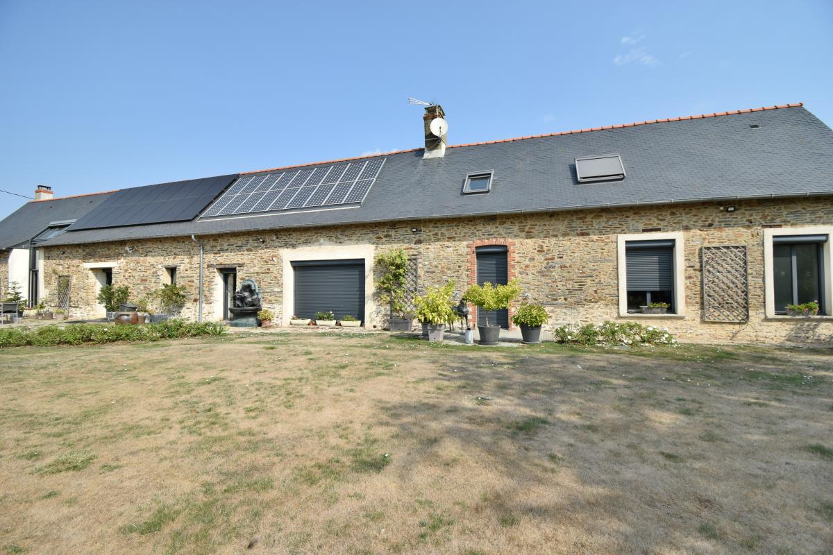 Située à mi-chemin entre Nantes et Angers sur la commune de Vallons-de-l 'Erdre, CAP-Notaires vous propose à la vente cette superbe longère en pierre de 256 m² a été entièrement rénovée avec goût et matériaux de qualité, alliant le charme de l’ancien au confort moderne. Nichée au cœur d’un domaine de plus de 2 hectares de prairies avec possibilité d'acquérir 21 hectares supplémentaires, elle offre un cadre de vie exceptionnel, au calme absolu et en pleine nature, tout en restant proche des grands axes.