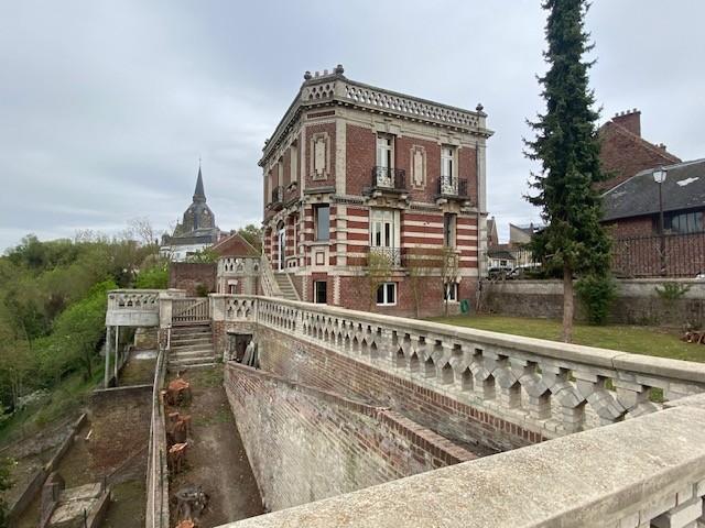 MAISON DE CARACTERE en centre ville avec vue sur la vallée de MONTDIDIER construite en pierres et briques divisée en :