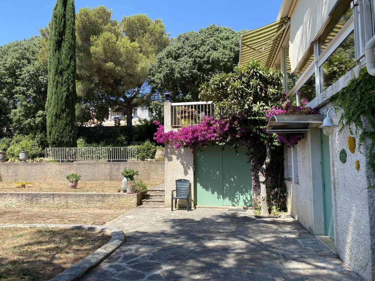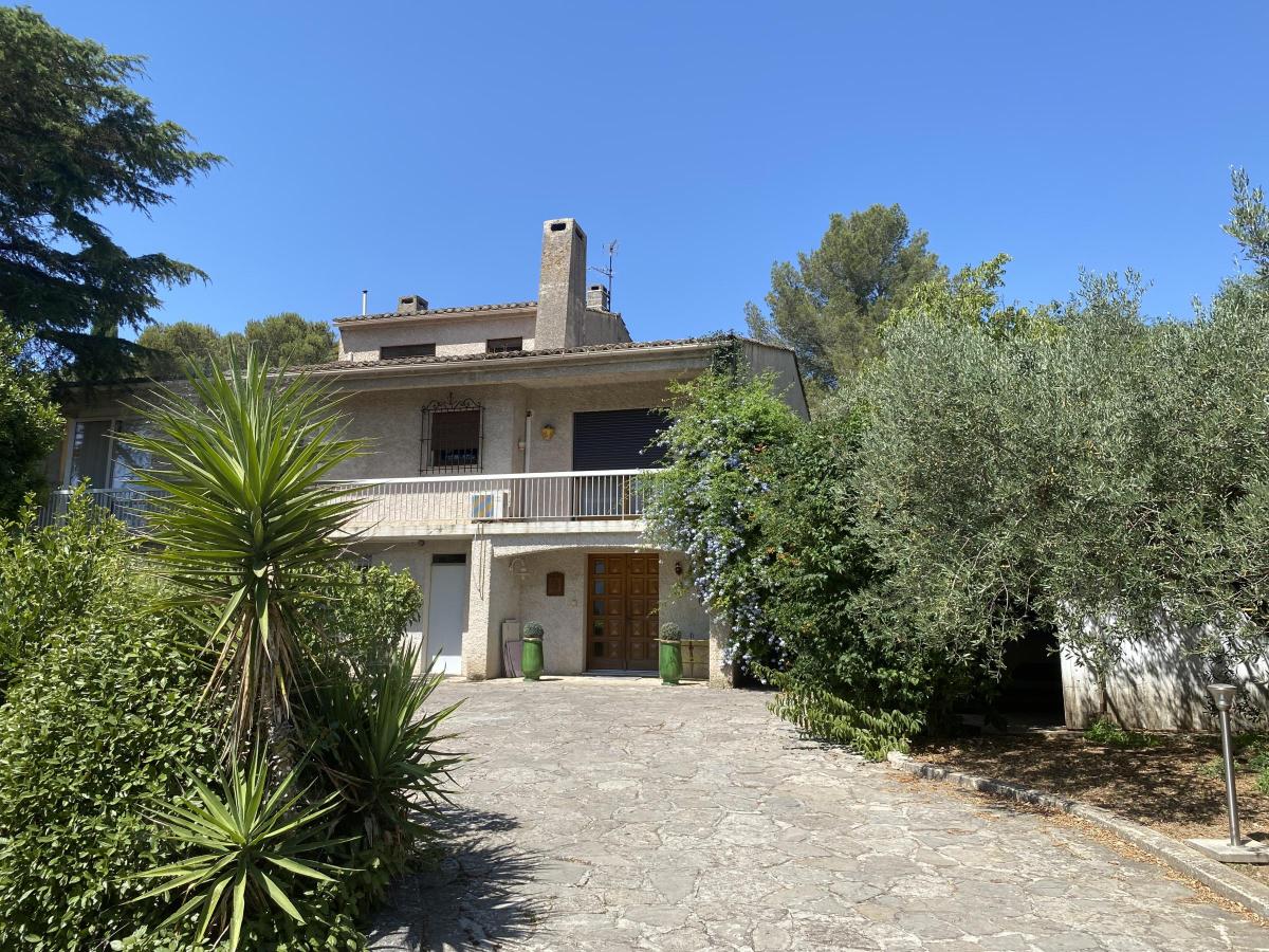 Collines Est de Nîmes: Maison de plus de 200 m² habitable + dépendances. Elle se compose d'un beau séjour avec véranda et terrasse, d'une cuisine équipée avec cellier et buanderie, de 4 chambres et de 3 salle de bains. Au Rez-de-jardin vous trouverez de nombreux rangements, cuisine d'été, caves etc... Ainsi qu'un appartement de type 2 de 60 m². Le tout sur un vaste terrain de 3000 m² avec forage, assainissement autonome et terrain piscinable.