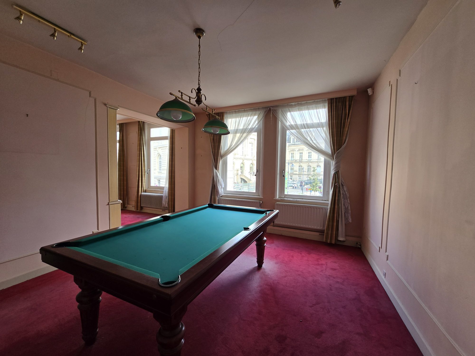 Partie habitation (au 1er étage accès par ascenseur): grande entrée, séjour salon, une grande pièce de passage, cuisine, une pièce repas, bureau, salon télé, une pièce billard, salle d'eau avec WC, une chambre, lingerie.