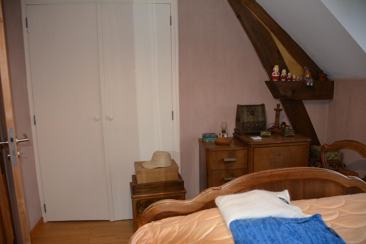 a l'étage : un palier avec un petit coin bureau, trois chambres (dont une avec un dressing et un balcon), une salle de bains, un wc