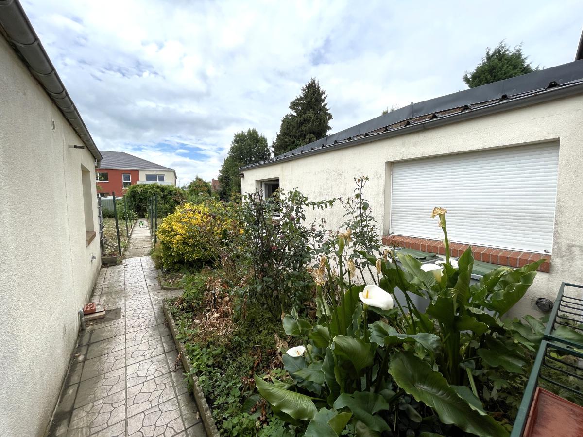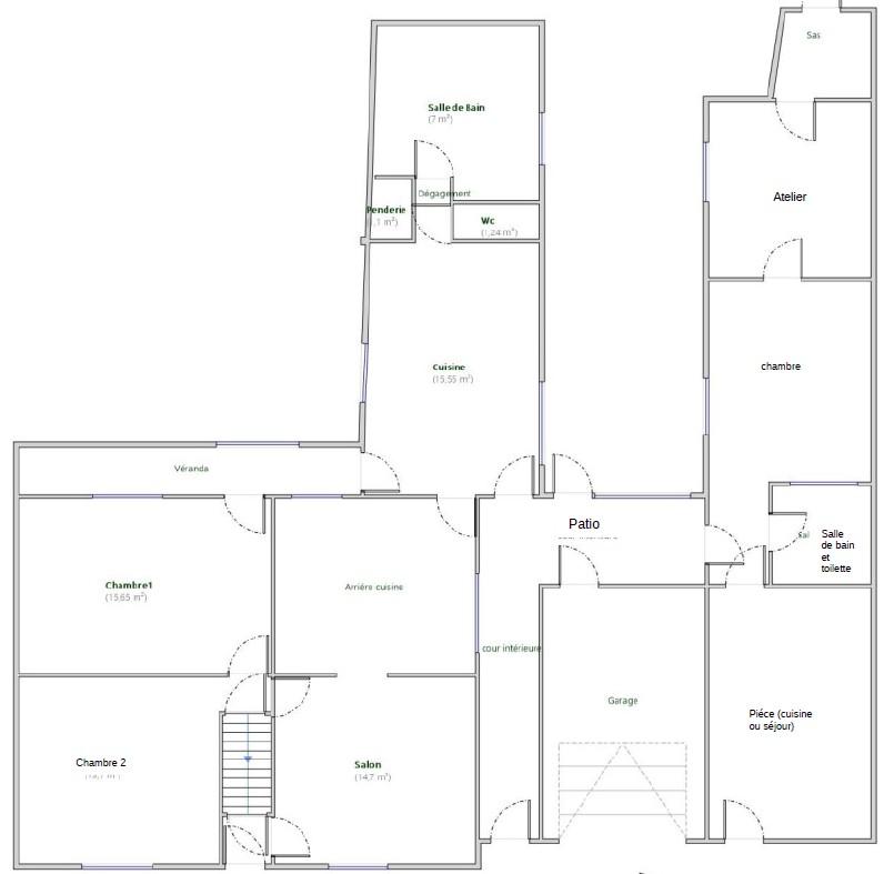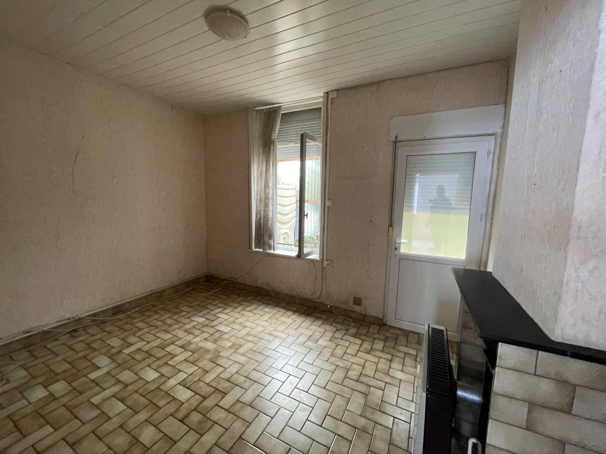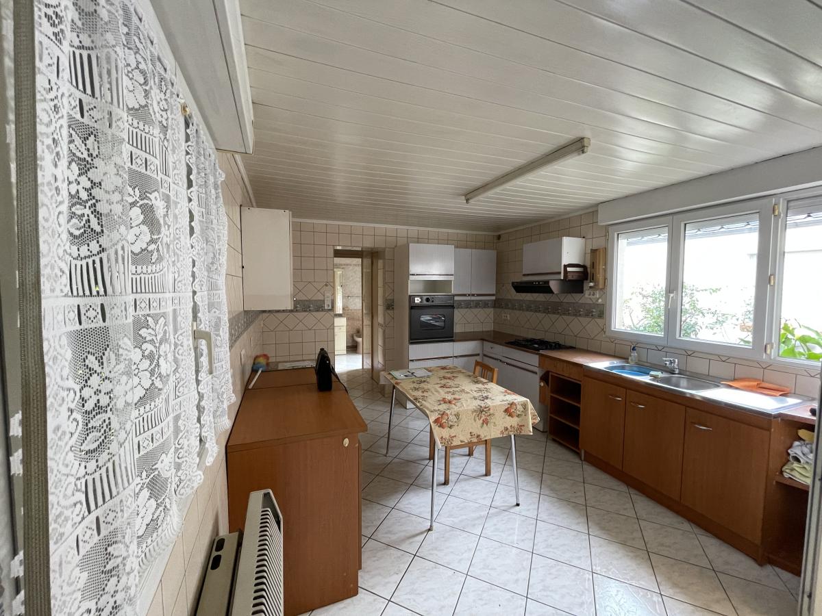 transformé en studio qui comprend une pièce ‘’séjour ou cuisine’’(Huisserie bois simple vitrage) , une chambre (huisserie pvc double vitrage) et une salle de bains avec un wc. Chauffage par convecteurs au gaz de ville, Un jardin clos et arboré d'environ 350 m². Le bien dispose d'un garage, d'une cave et d’un atelier.