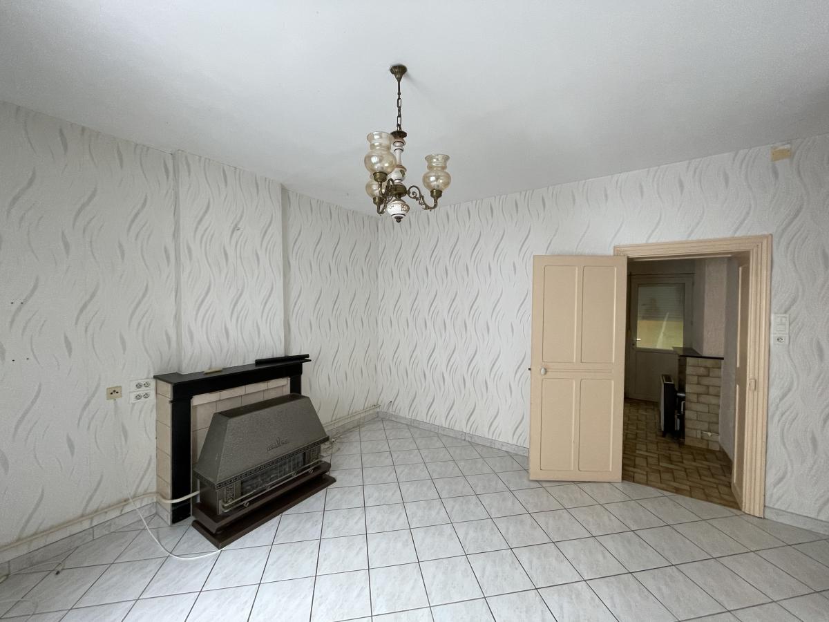 Au premier étage, un palier donnant sur un grenier non isolé et une pièce mansardée (huisseries en bois avec du simple vitrage). Un patio (huisserie pvc double vitrage) avec un accès séparé donnant sur la rue et desservant l'ancien local commercial