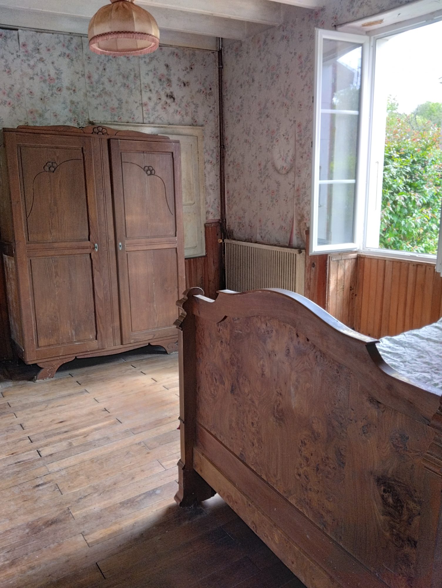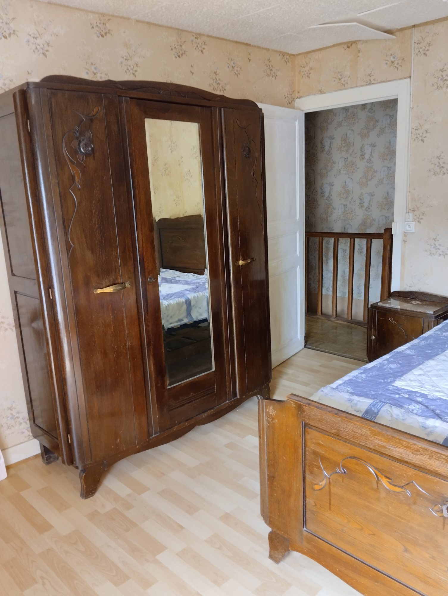 A l'étage : un couloir dessert trois chambres (11 m²), un wc avec un lavabo, un espace grenier.