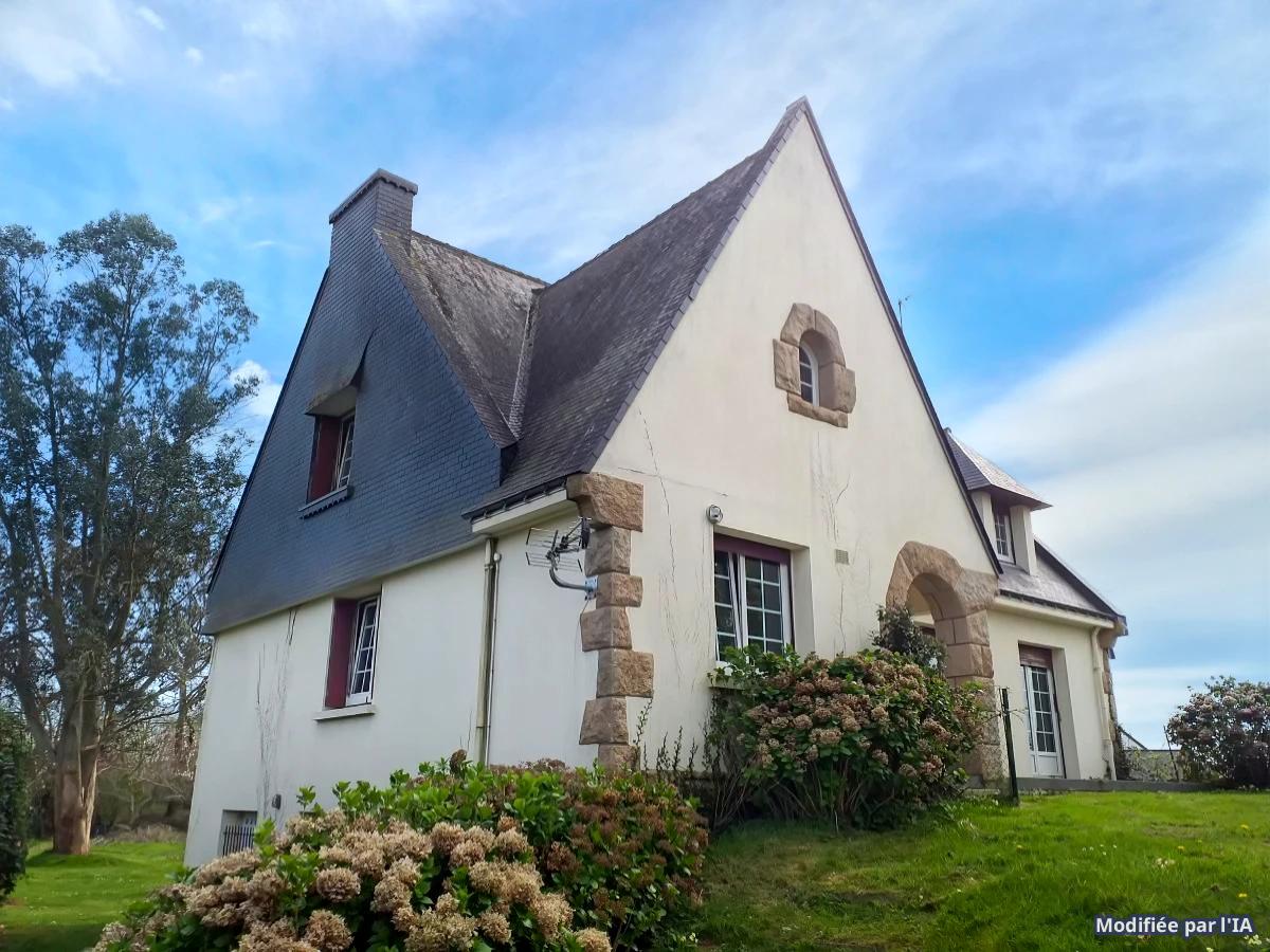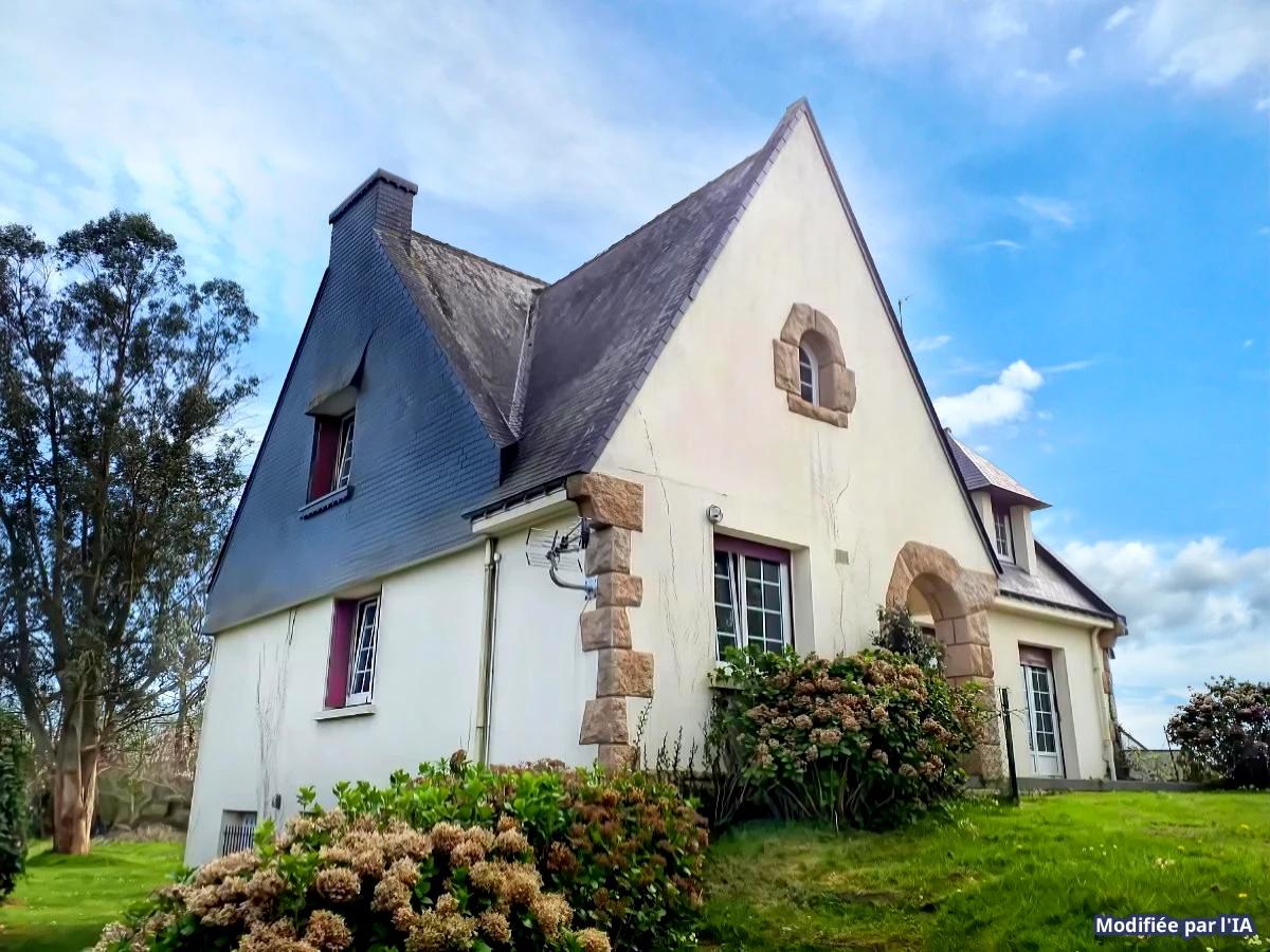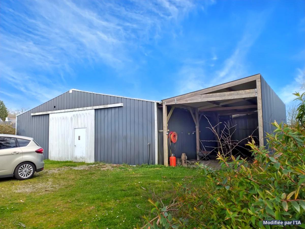 Belle maison Néo Bretonne offrant 150m² habitables sur un beau terrain de 3860m² avec un hangar de 145m² (hauteur 3,07mètres)et carport attenant de 48m²: