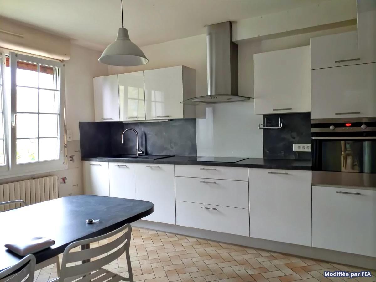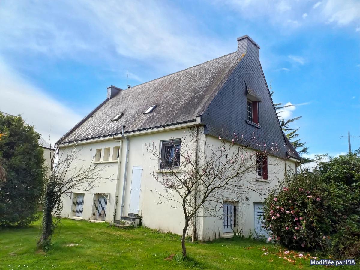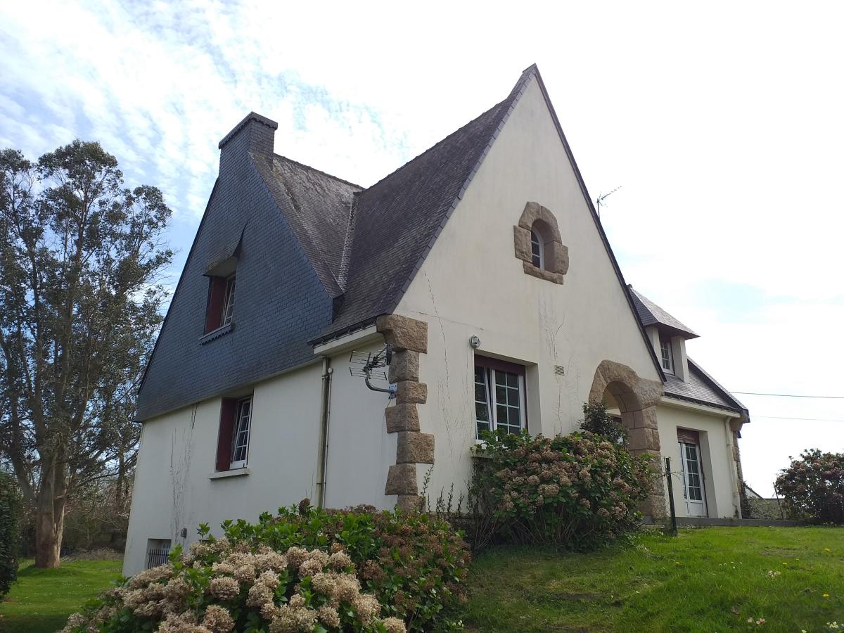 Belle maison Néo Bretonne offrant 150m² habitables sur un beau terrain de 3860m² avec un hangar de 145m² (hauteur 3,07mètres)et carport attenant de 48m²: