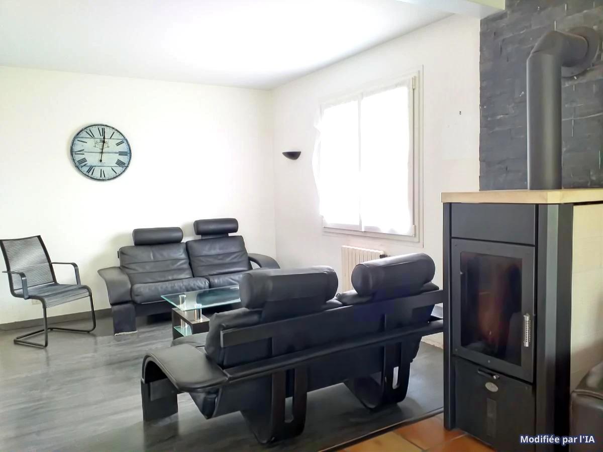 -Rez-de-chaussée: entrée, séjour-salon avec poêle à bois, terrasse, cuisine, bureau, une chambre, WC, salle de bains;