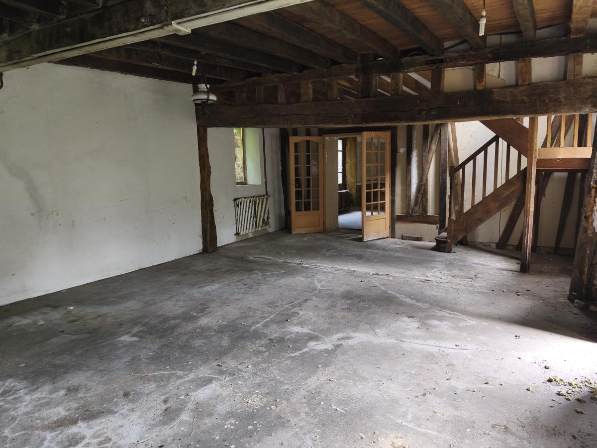 Le rez-de-chaussée est composé d'un séjour avec cheminée, 1 chambre, 2 pièces, cuisine, salle d'eau, wc, chaufferie,