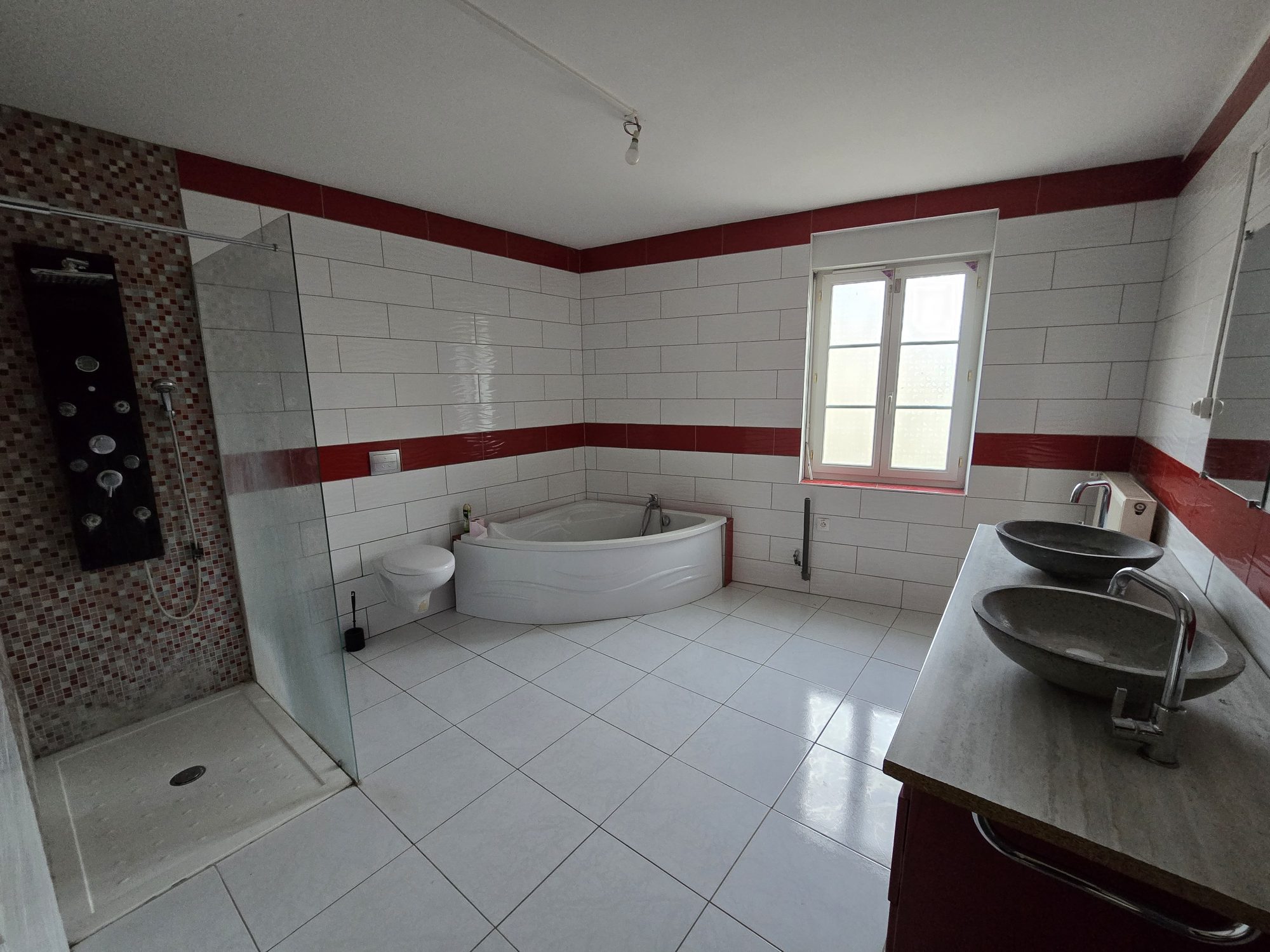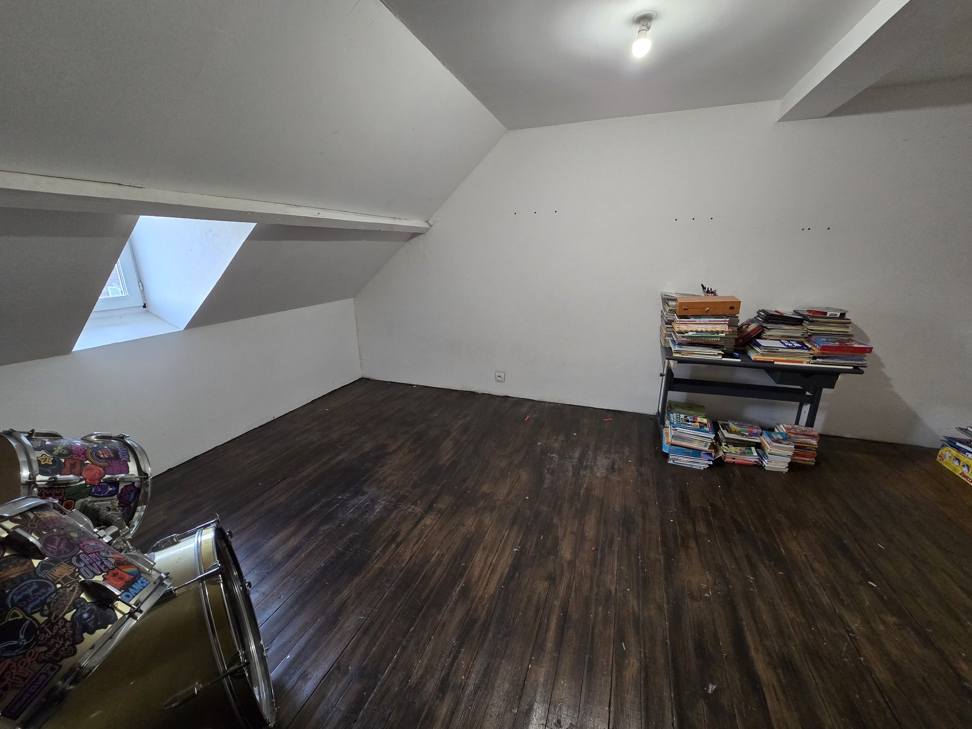 Au 1er étage : palier, trois chambres, salle de bains avec wc.