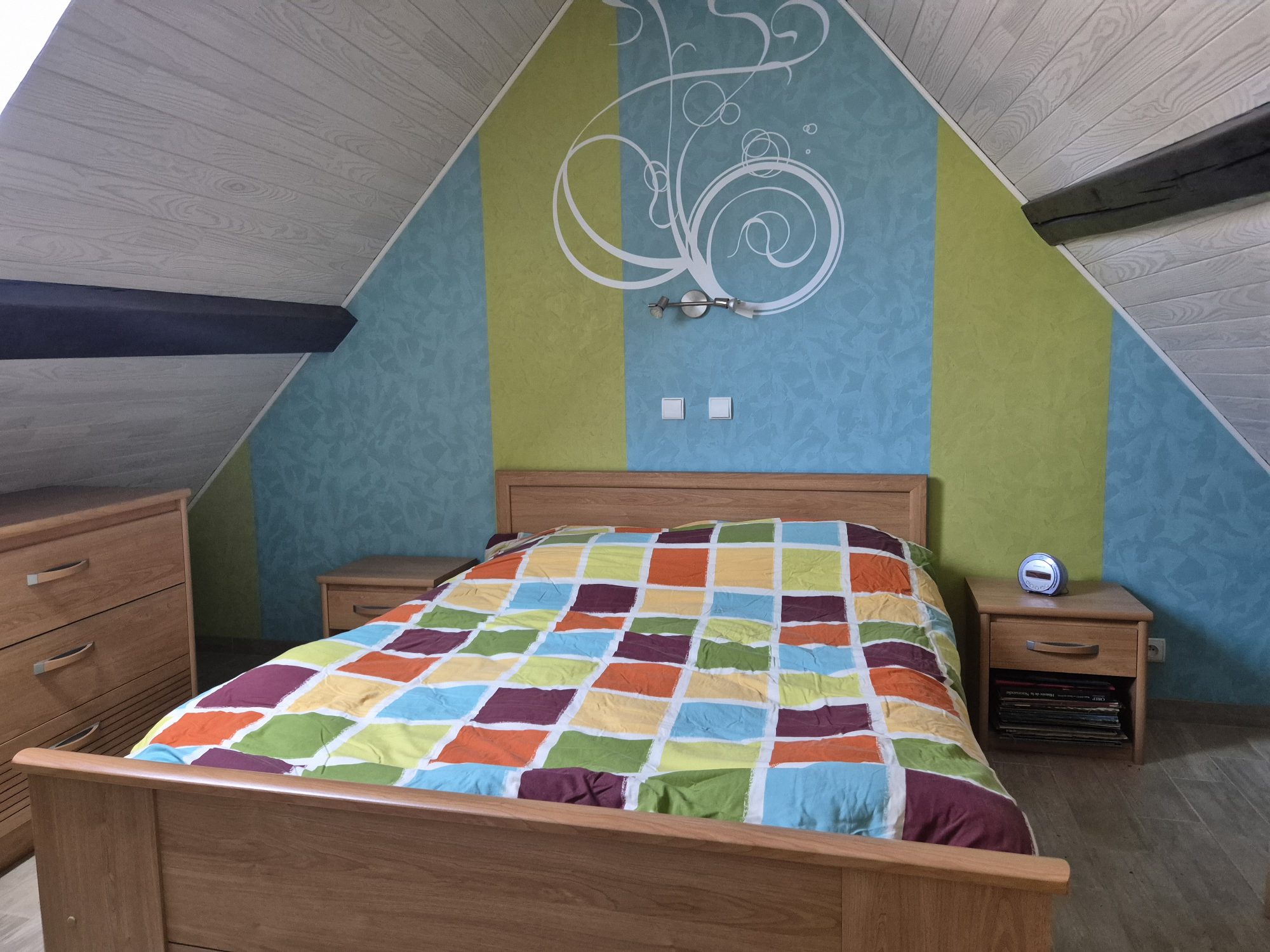 La seconde maison renferme au rez-de-chaussée : un salon donnant accès à la première maison, un séjour avec poêle à granulé, un débarras, un WC et un cellier. A l'étage : une pièce à usage de chambre, une chambre, et un grenier en cour d'aménagement avec WC. Une cave en sous-sol.