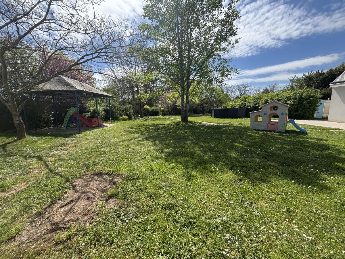 MAZE-MILON (49630) Mazé, maison construite en 1982 de 185 m² habitables comprenant au rez de chaussée : entrée, cuisine aménagée et équipée, pièce de vie avec poêle à granulés, salle de jeux, un bureau, buanderie et cave. Au premier étage quatre chambres dont une suite parentale avec dressing et salle d'eau, salle de bains. Garage de 160 m². Terrain clos avec portail électrique et puits.