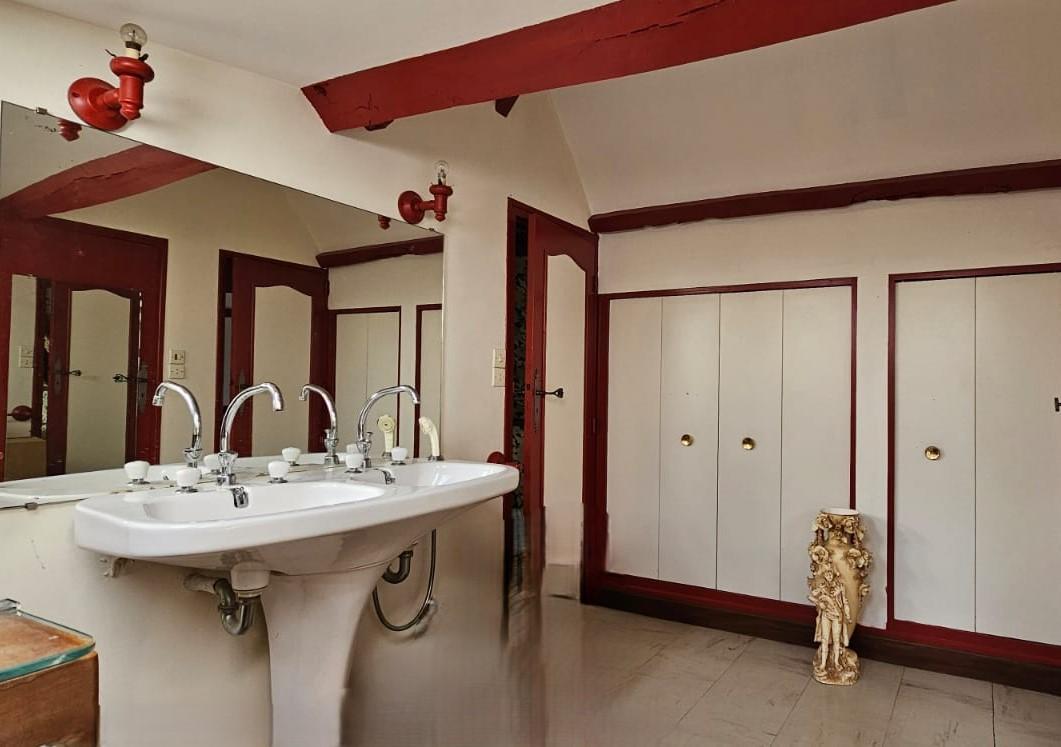 - Deux pièces sous combles et un palier avec vasques. Terrain paysagé attenant comprenant des dépendances avec un garage 3 places et un atelier.