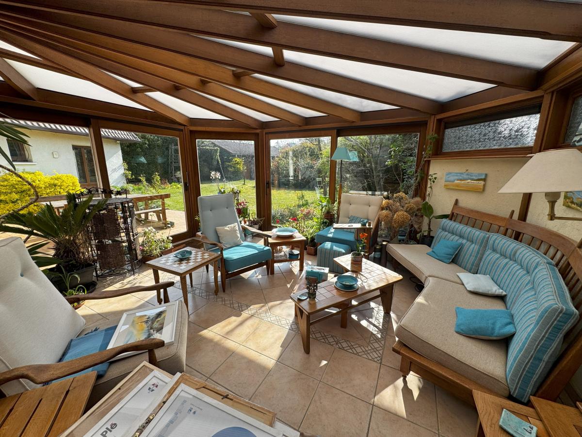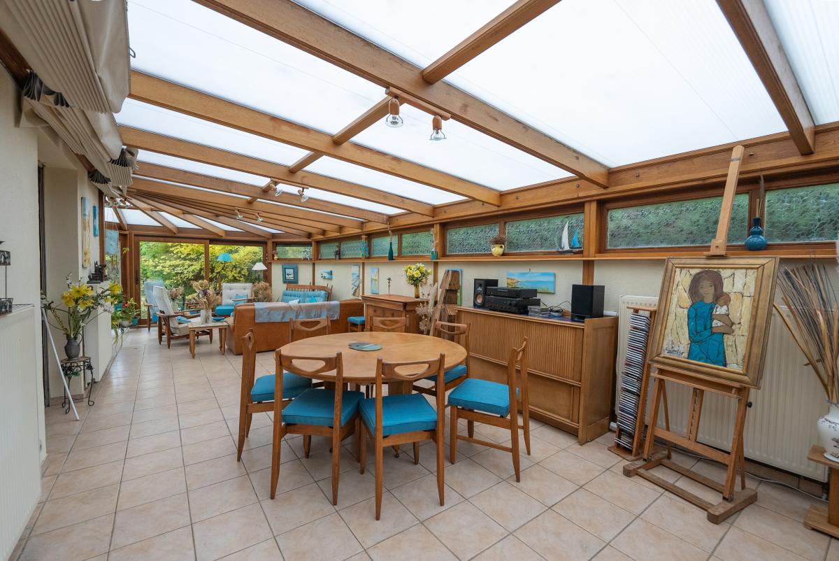 Au rez-de-chaussée : entrée sur hall, bureau, salle de séjour (cheminée feu de bois équipée d'un insert), salle à manger, cuisine équipée, grande véranda (40 m²), water-closet, une chambre avec salle de douche et water-closet ;