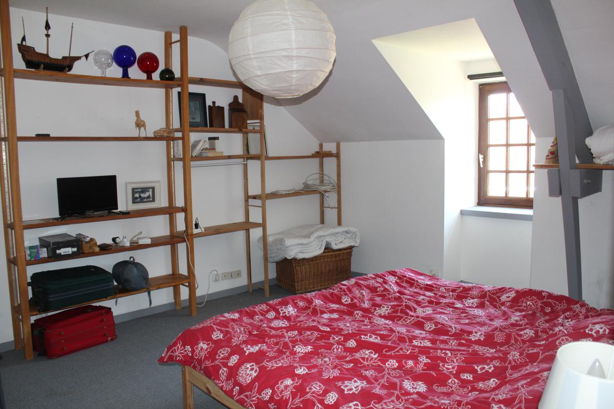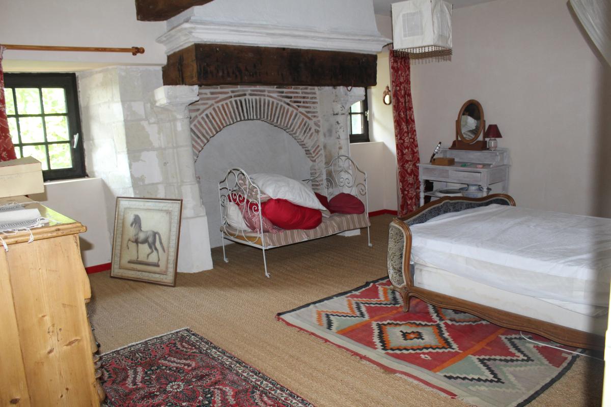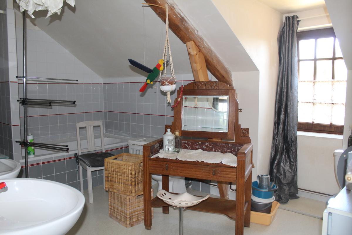 A l'étage : accès par un escalier en pierre dans une tour, un dégagement desservant deux chambres, un deuxième dégagement desservant trois chambres, une salle d’eau et une salle de bains avec WC.