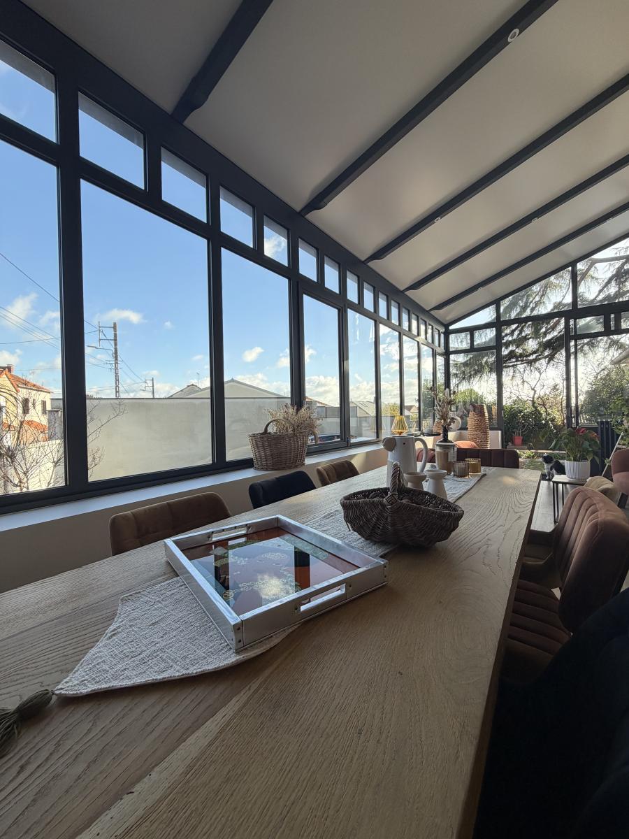 Cette belle bâtisse accueille dès l’entrée un hall élégant, puis un vaste salon sur parquet avec cheminée, une grande salle à manger avec cheminée. La cuisine, aménagée et équipée dans un esprit moderne, s’inscrit naturellement dans la continuité des pièces de vie. Un grand bureau et une véranda en réception prolongent l’ensemble et offrent de beaux volumes baignés de lumière.