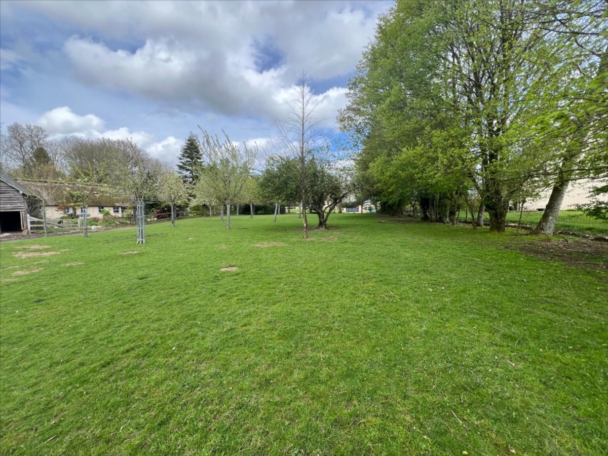 Terrain à bâtir partielle clos et arboré, avec partie plate et une autre très légèrement dénivelé, dans un environnement paisible en lisière de forêt ainsi que d'un herbage, et en bout de village.