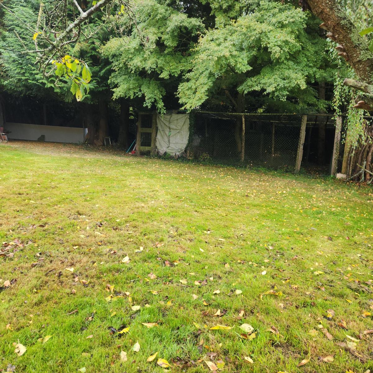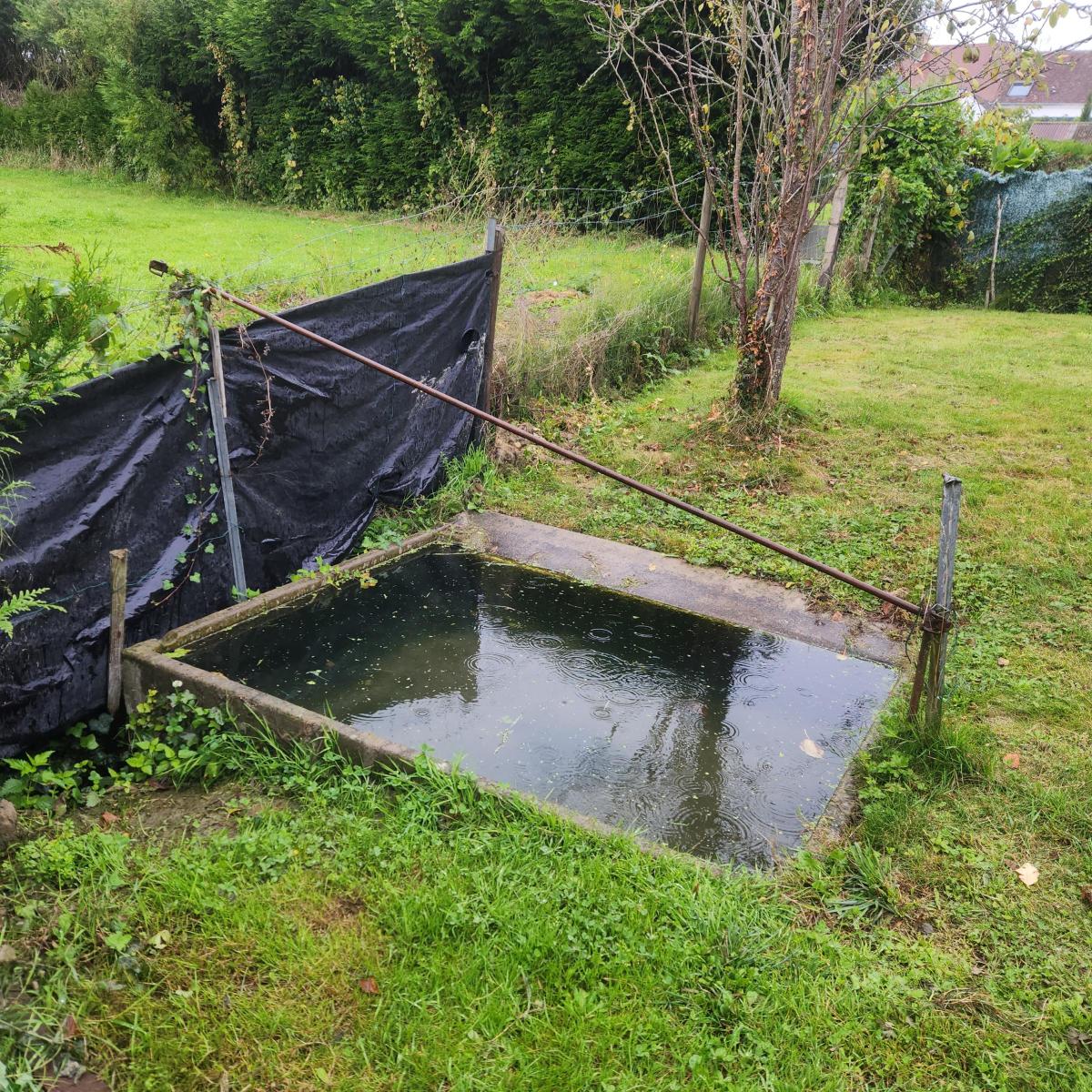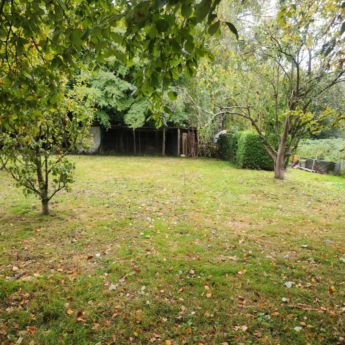 Un terrain de loisirs avec potager et arbres fruitiers, un abri en dur et un point d'eau.