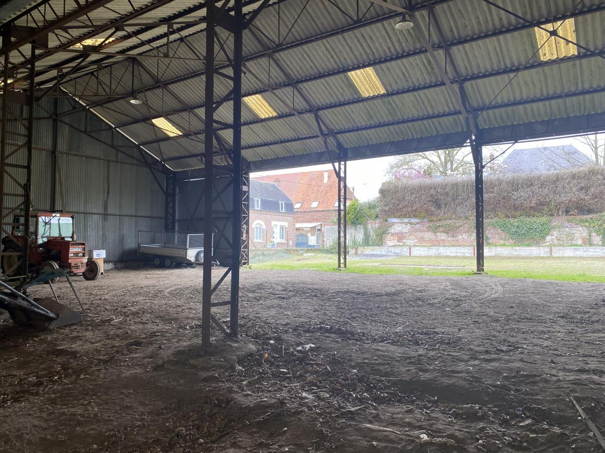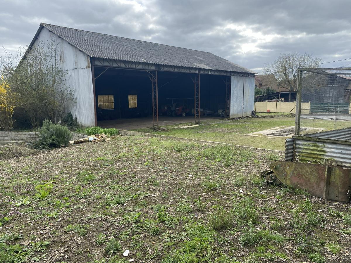 CROISILLES - dans le centre du bourg : parcelle de terrain constructible de 1255 m² située en angle de rue sur laquelle est érigé un hangar - Belle exposition - Réseaux en bordure de voirie.