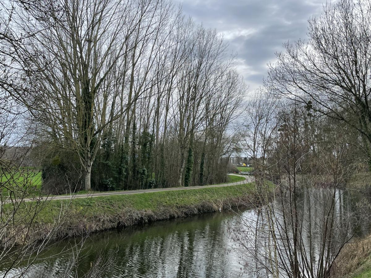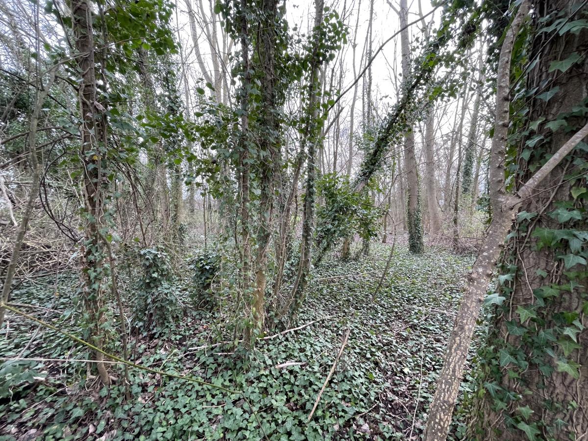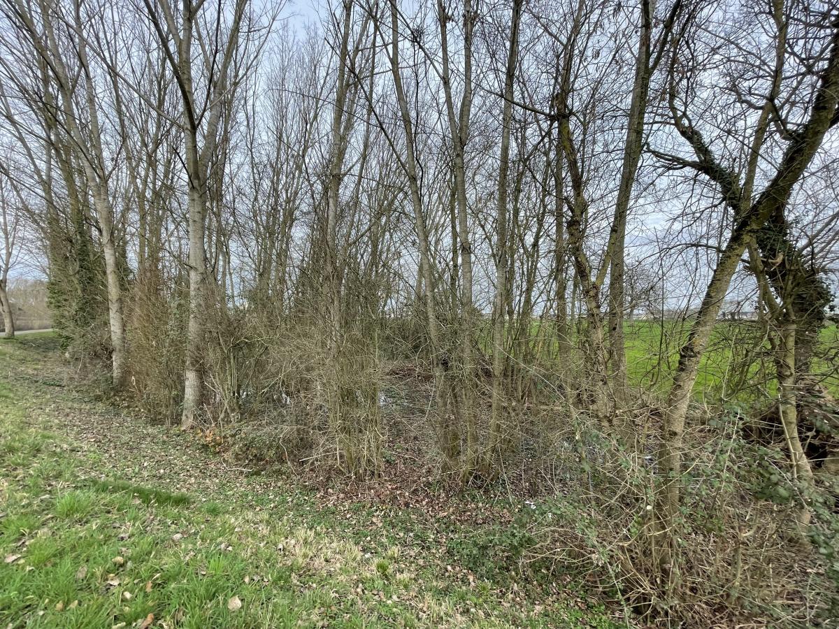 Un terrain de LOISIRS en contre bas d’un chemin communal, à proximité d'une trame verte et bleue de 1280m², composé majoritairement de peupliers.