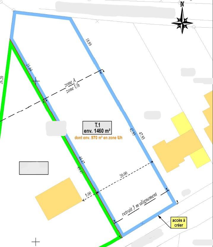TREILLIERES, dans le hameau de LA GERGAUDIERE, un terrain à bâtir de 1460m² situé en zone Uh (pour environ 970m²) et A du Plan Local d'Urbanisme Intercommunal avec une façade de 20m.