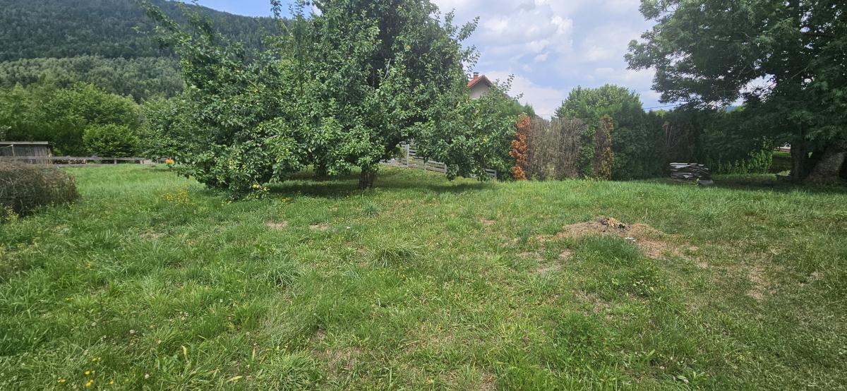 Terrain dans une petite rue au calme avec vue sur les montagnes.