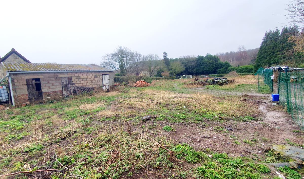 un accès est possible à l'autre extrémité du terrain. Il y a une ancienne dépendance en brique/parpaing et tôles fibro à l'entrée du terrain,
