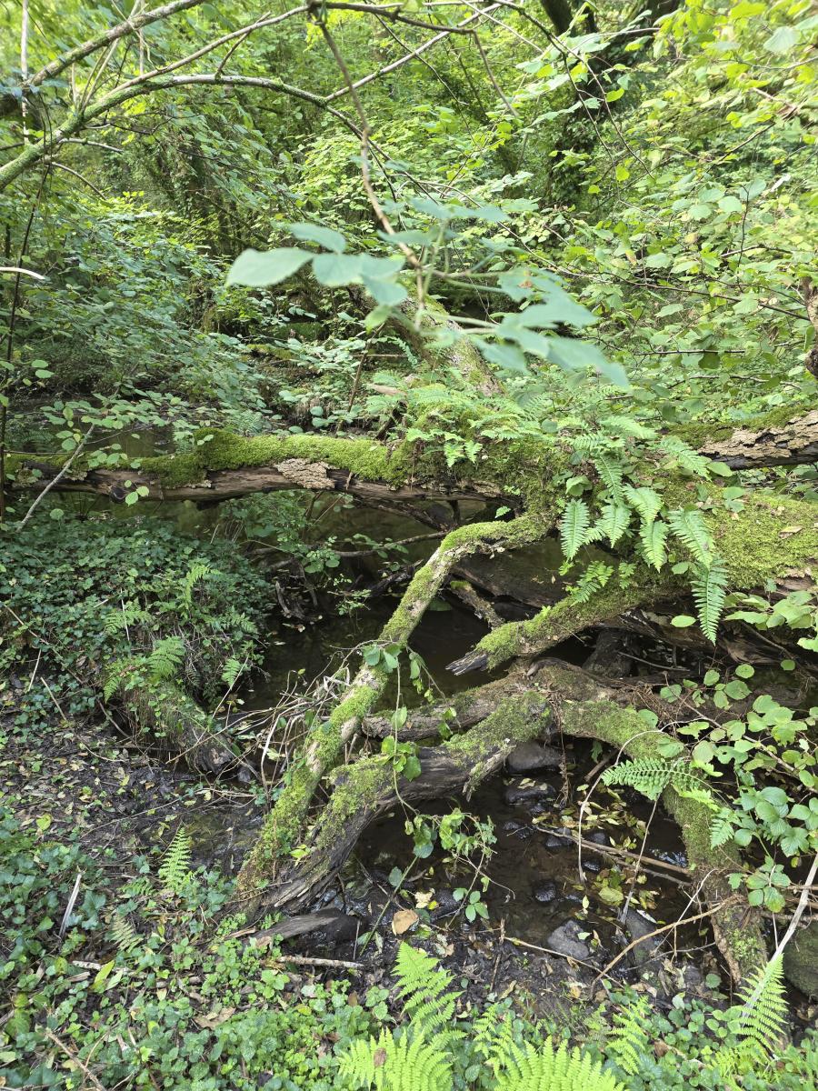 Le bas du terrain, en bordure de l’Aven, dévoile un cadre particulièrement bucolique et préservé, parfait pour les amoureux de nature.