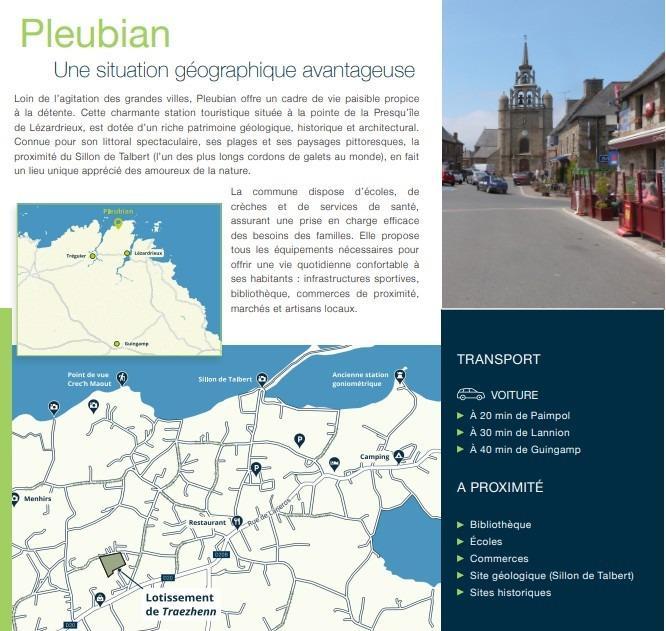 A saisir, dans ce nouveau lotissement à PLEUBIAN, 19 terrains à bâtir libre de tous constructeurs. de 355 à 471 m², pour votre nouveau projet de construction. Située sur la presqu'île de Lézardrieux connue pour son littoral exceptionnel, ses plages et ses paysages grandioses, la commune de Pleubian offre un beau cadre de vie entre la qualité de ses infrastructures et sa richesse culturelle et économique.