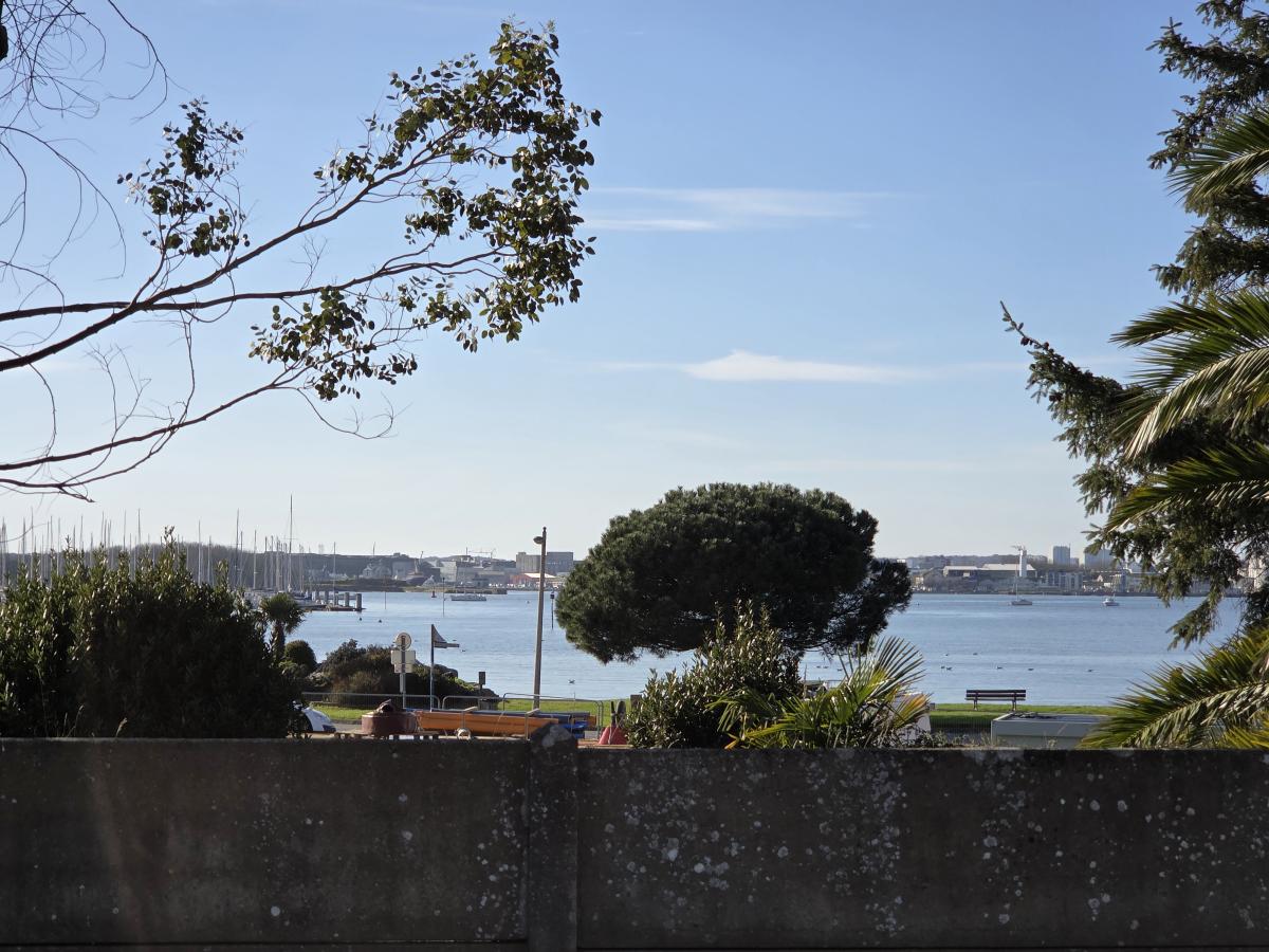 A Vendre à Locmiquélic, vue sur le port de Ste Catherine, proximité des commodités, non inondable, parcelle constructible (zone Ubr) de 366m2 , CES 70%. Garage en entrée de parcelle.