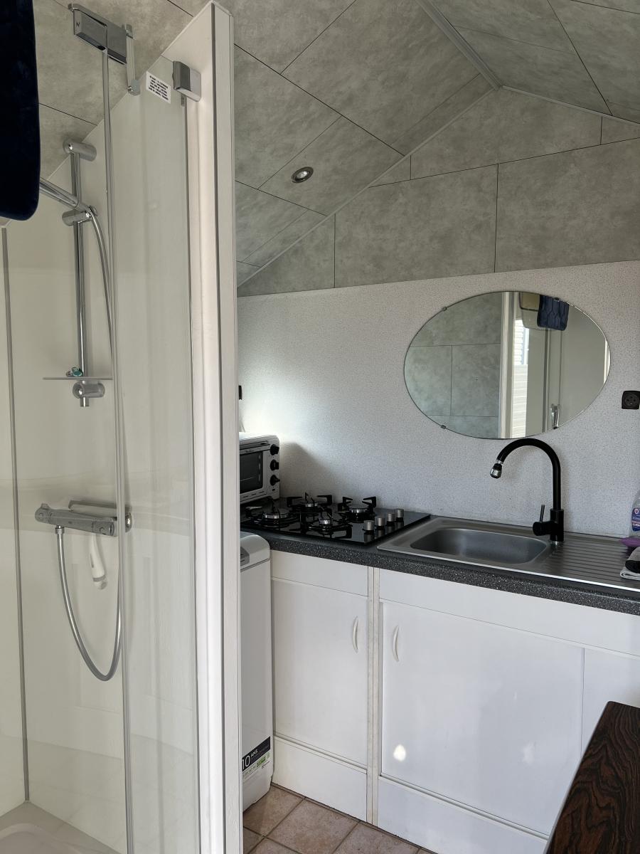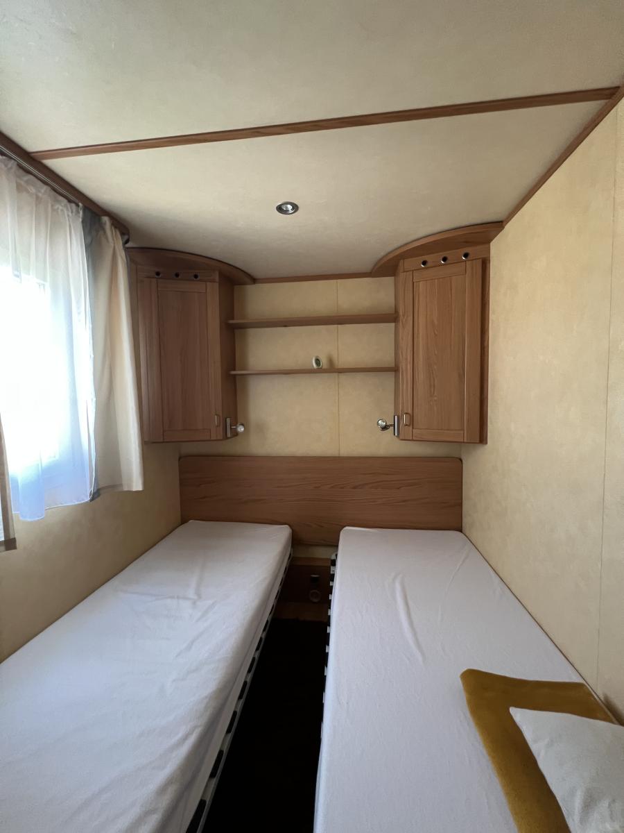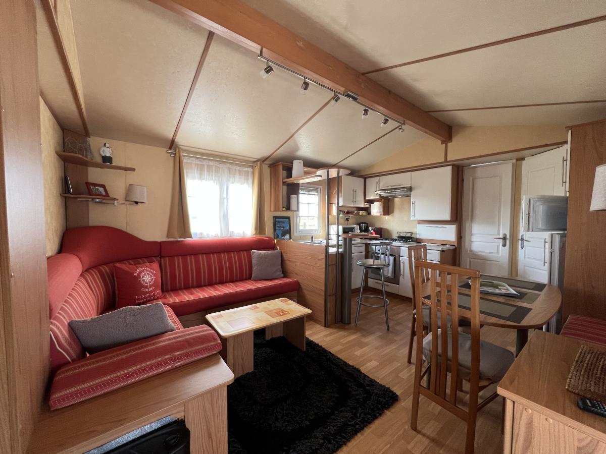 À 600m de la plage, Terrain de loisirs avec mobil home de 2009 en parfait état, d’env. 40m2, av. 3 ch. Terrasse abritée. Cabanon aménagé.. Jardin clos. Possibilité de construction légère.