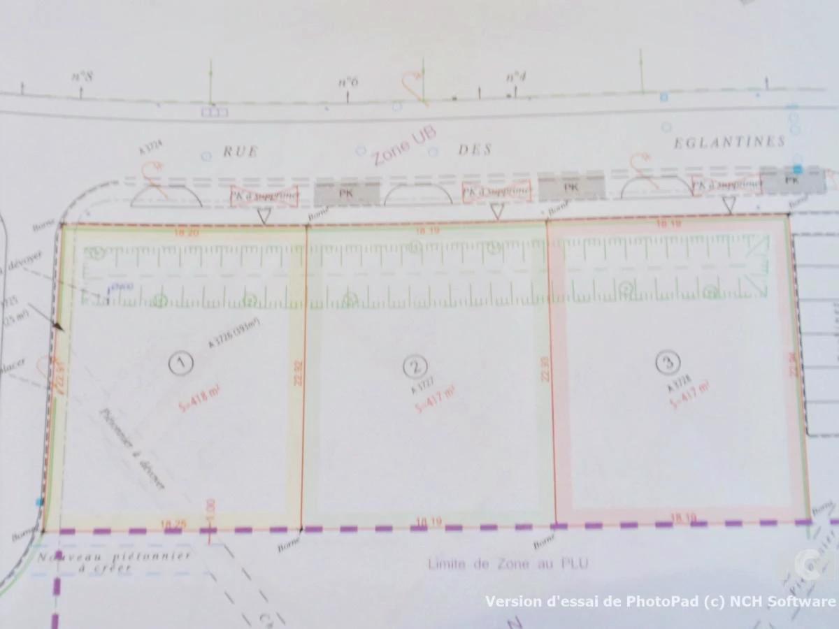 3 terrains constructibles de 417 m² avec une façade de 18m19 exposés Sud-Ouest.