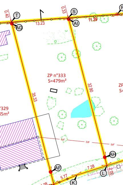 Terrain en premier rideau de 479m², à viabiliser, avec une façade de 13,05m.