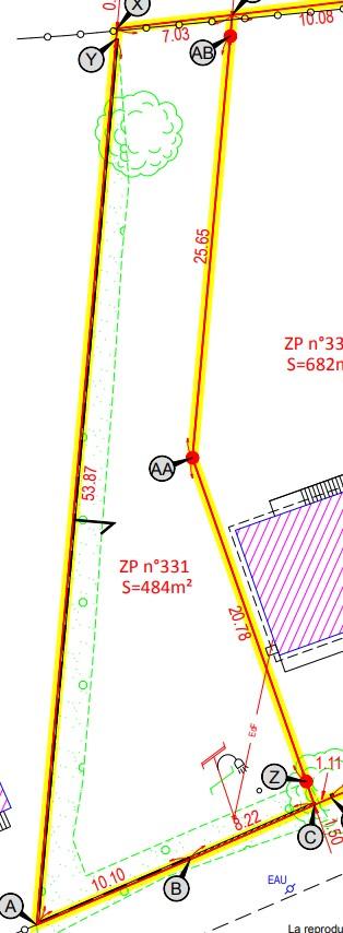 Terrain en premier rideau de 484m², à viabiliser, avec une façade de 18,32m.