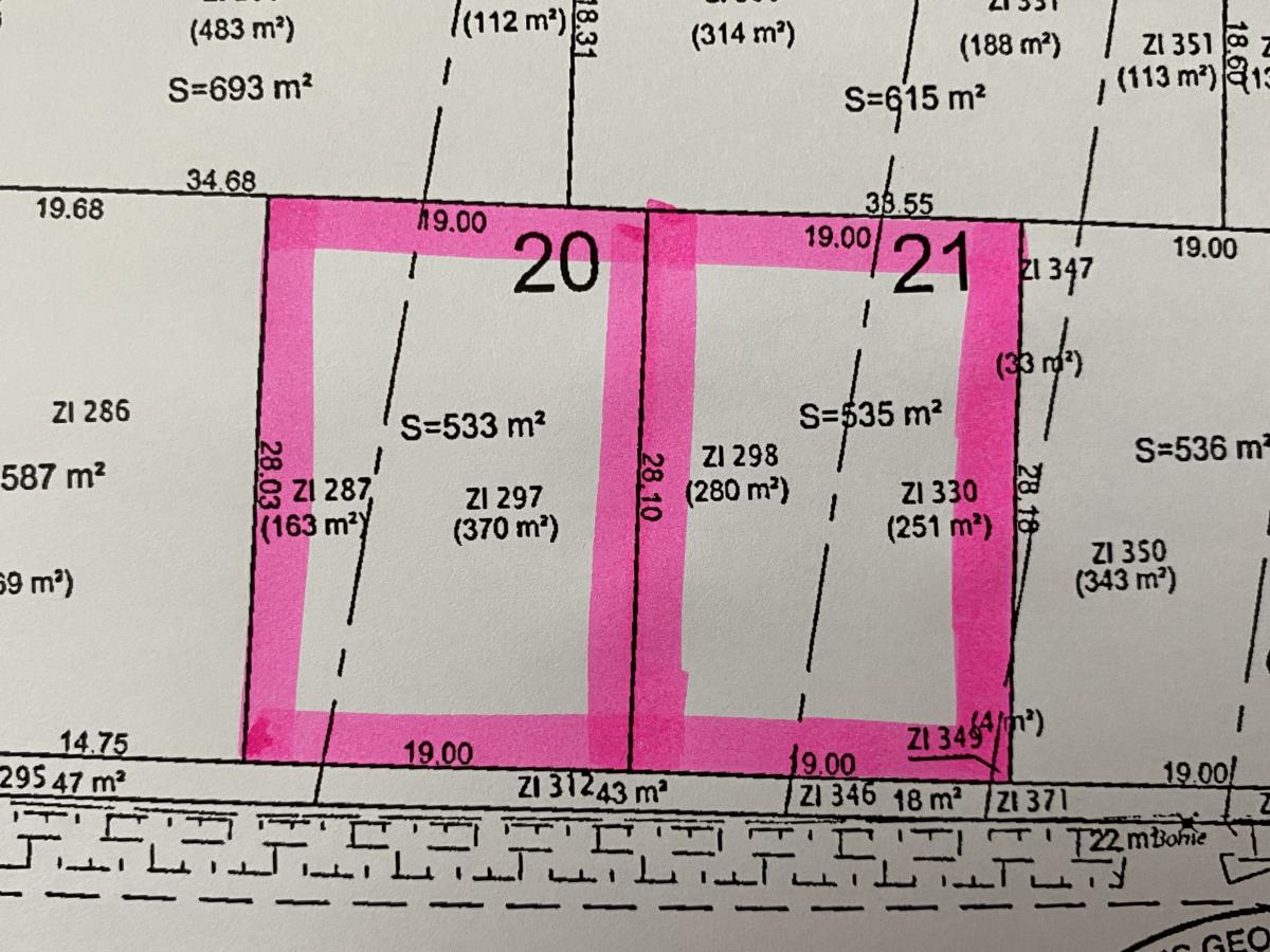 L'étude met en vente 2 terrains à bâtir : le premier a une contenance de 533m², le second 535m².