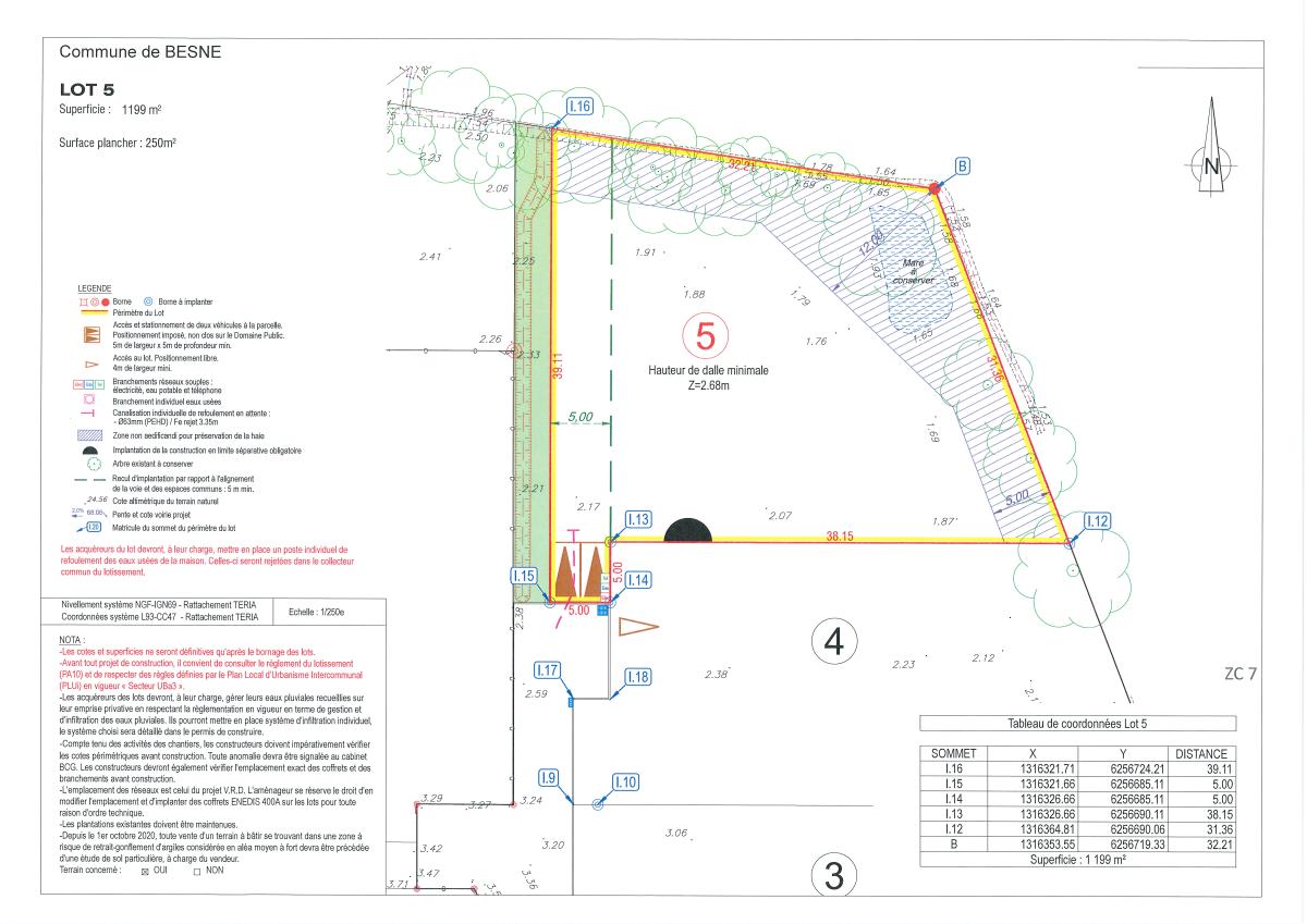 Lot n°5 : 1 199 m² - Façade de 39 m et surface de plancher de 250 m² : 124 680 €