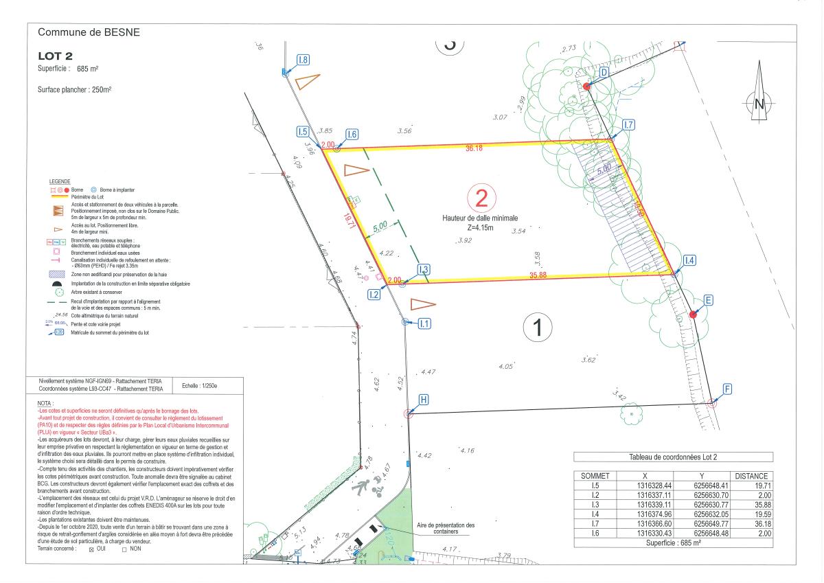 Lot n°2 : 685 m² - Façade de 19 m et surface de plancher de 250 m² : 89 300 €