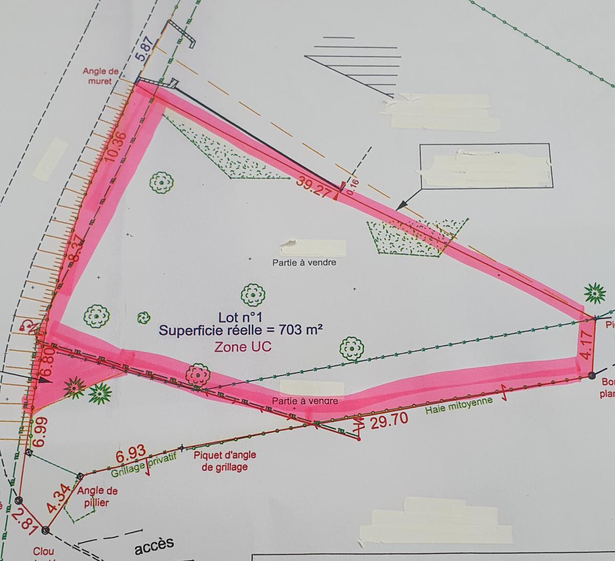 Une parcelle de terrain à bâtir d'une superficie de 703 m² et 25 m de façade.