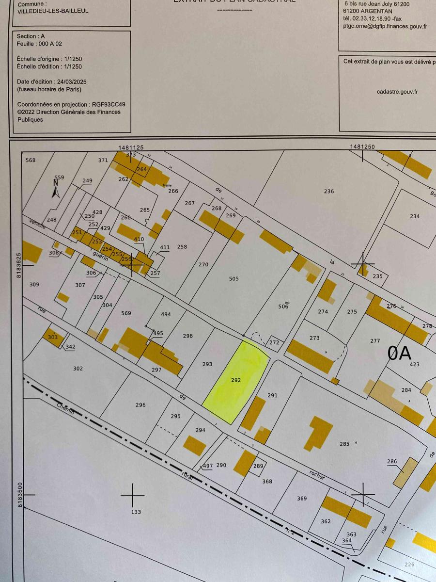 VILLEDIEU LES BAILLEUL: terrain constructible de 808 m², eau, électricité à proximité, assainissement individuel