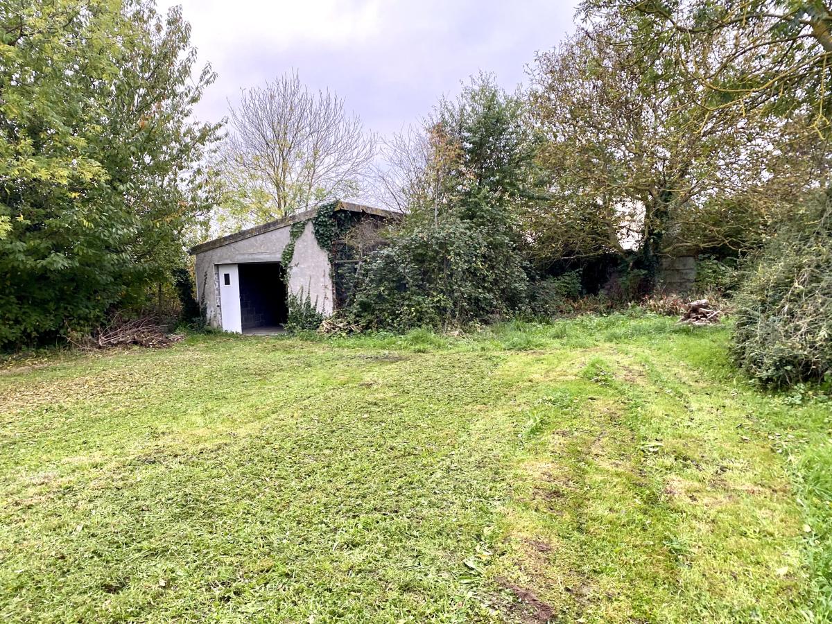 Terrain plat, partiellement clôturé, bénéficiant d’une belle exposition. Il dispose déjà d’un grand garage en aggloméré, offrant un bel espace de stockage ou un premier aménagement.