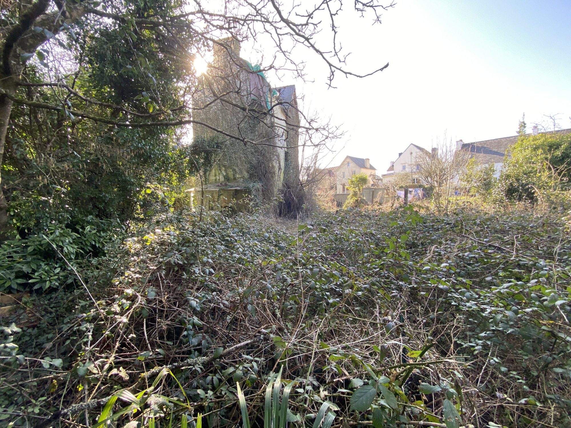 En plein cœur d'Hennebont, beau terrain viabilisé entièrement constructible comprenant une maison ayant subi un incendie.