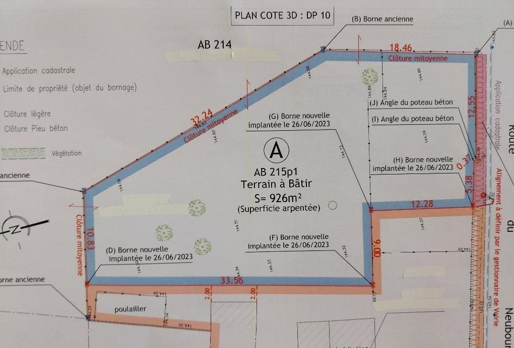 Terrain à bâtir viabilisable de 955 m², terrain plat, partiellement clos (3 cotés) , desservi par le tout à l'égout.