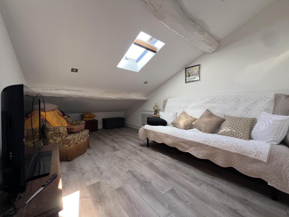 D’une surface Loi Carrez de 51,705 m², ce bien comprend : une pièce de vie lumineuse avec cuisine ouverte, une salle d’eau avec WC, une chambre en rez-de-chaussée ainsi qu’un bel espace sous combles comprenant deux chambres supplémentaires et un pallier aménagé en coin détente. L’ensemble est en bon état, traversant, avec vue dégagée sur la place et ses platanes.