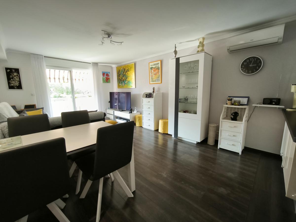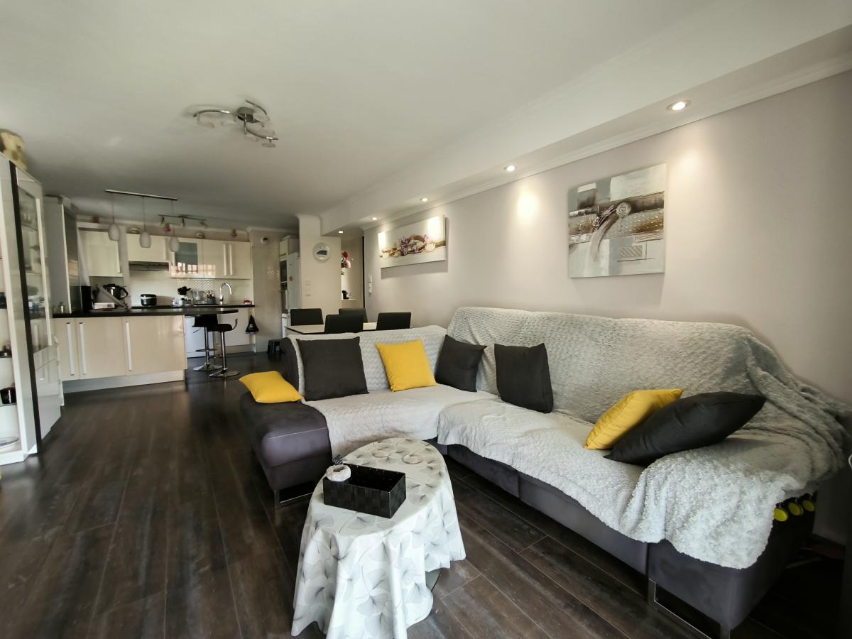 VIAGER occupé sur 2 têtes (un monsieur de 78 ans et une dame de 80ans). Val Fleuri, résidence sécurisée. Appartement de type 4 pièces au premier étage, traversant d'angle avec un hall d'entrée avec placards un séjour avec cuisine américaine équipée, terrasse d'angle de 21m². 3 chambres, une salle d'eau, un wc indépendant avec lave-mains. Nombreux rangements, climatisation réversible dans toutes les pièces , double vitrage de partout récent (2023) cumulus 200L neuf. Stores et volets roulant électriques avec fermeture centralisée et individuelles