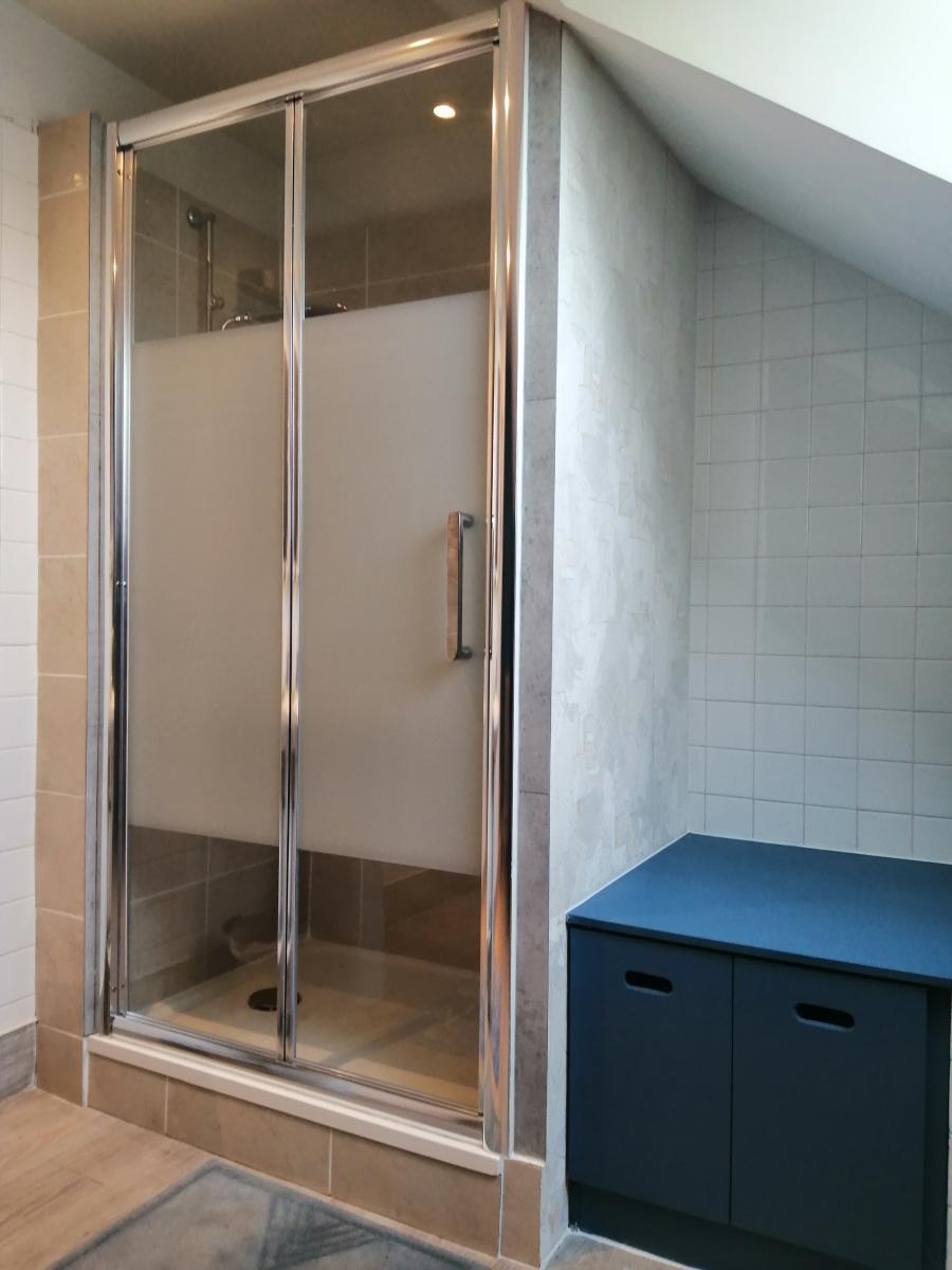 - Au rez-de-chaussée : entrée, salon salle à manger avec cheminée, cuisine aménagée, buanderie, wc, chaufferie,