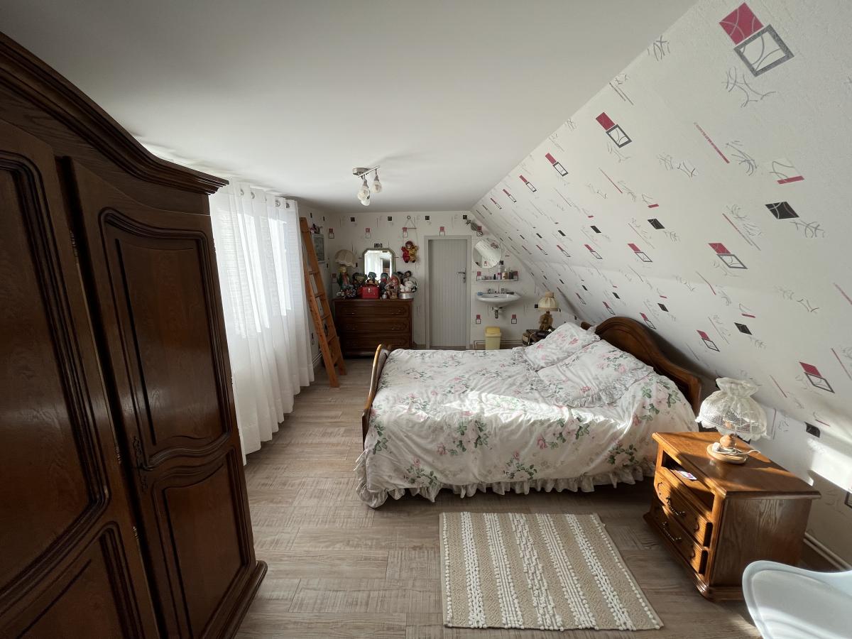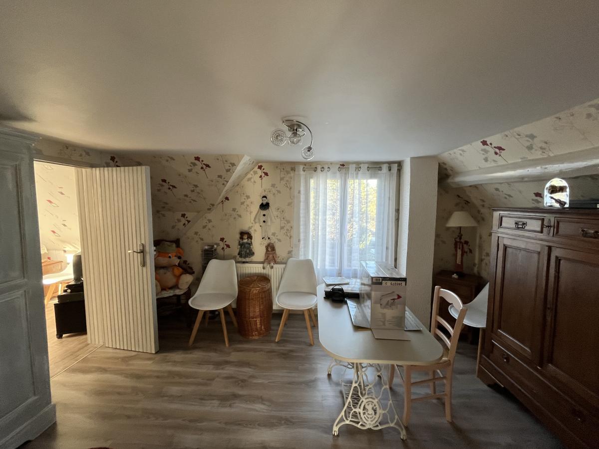 Au 1er étage : un palier dessert 2 chambres de 12 m² dont une traversante et un grenier.