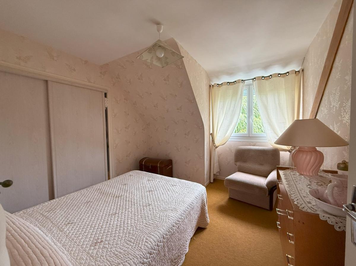 Elle se compose au rez-de-chaussée d’une entrée, de WC séparés, d’une cuisine indépendante et d’un séjour lumineux. À l’étage, un palier dessert trois chambres et une salle d’eau. Les annexes comprennent un grenier sous combles, un garage et un grenier supplémentaire, idéals pour des aménagements ou du stockage.
