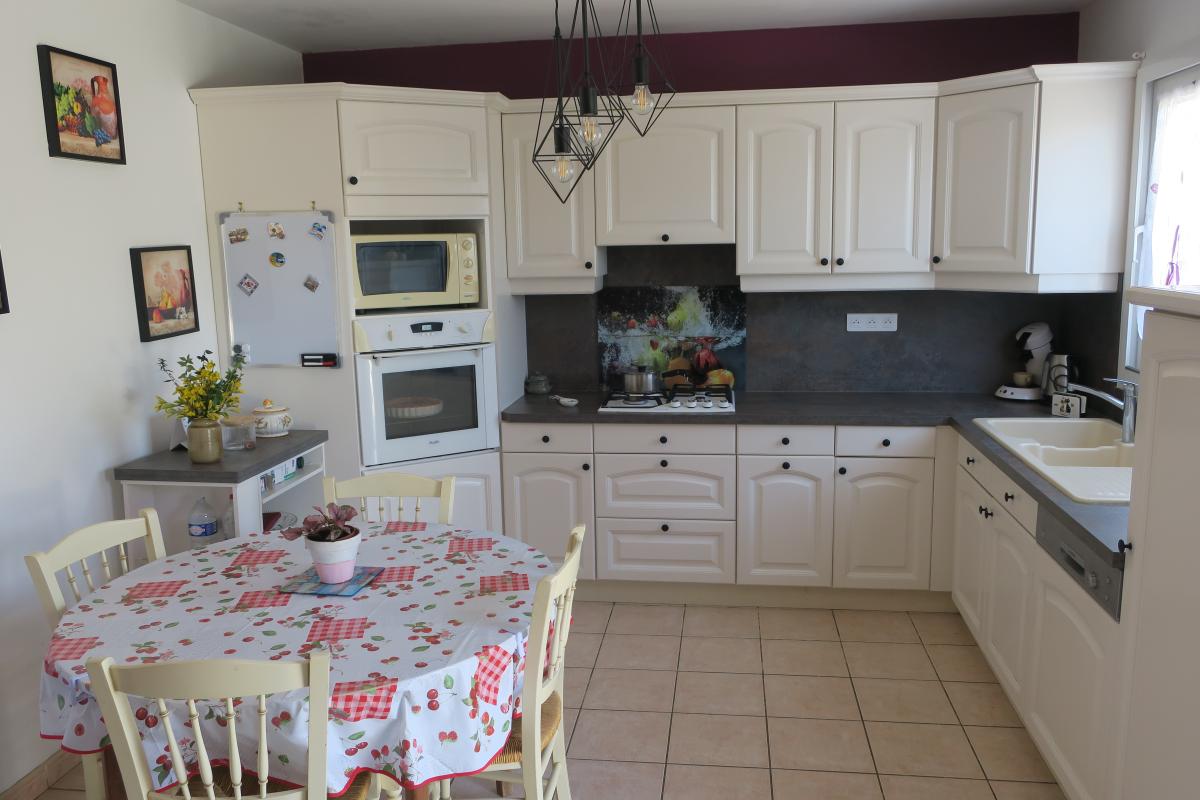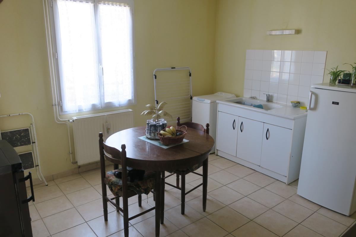 Entrée, salon / salle à manger, cuisine aménagée et équipée (hotte, plaques, four, lave-vaisselle, réfrigérateur), arrière cuisine ou chambre, dégagement, débarras, 3 chambres, salle d'eau, toilettes.