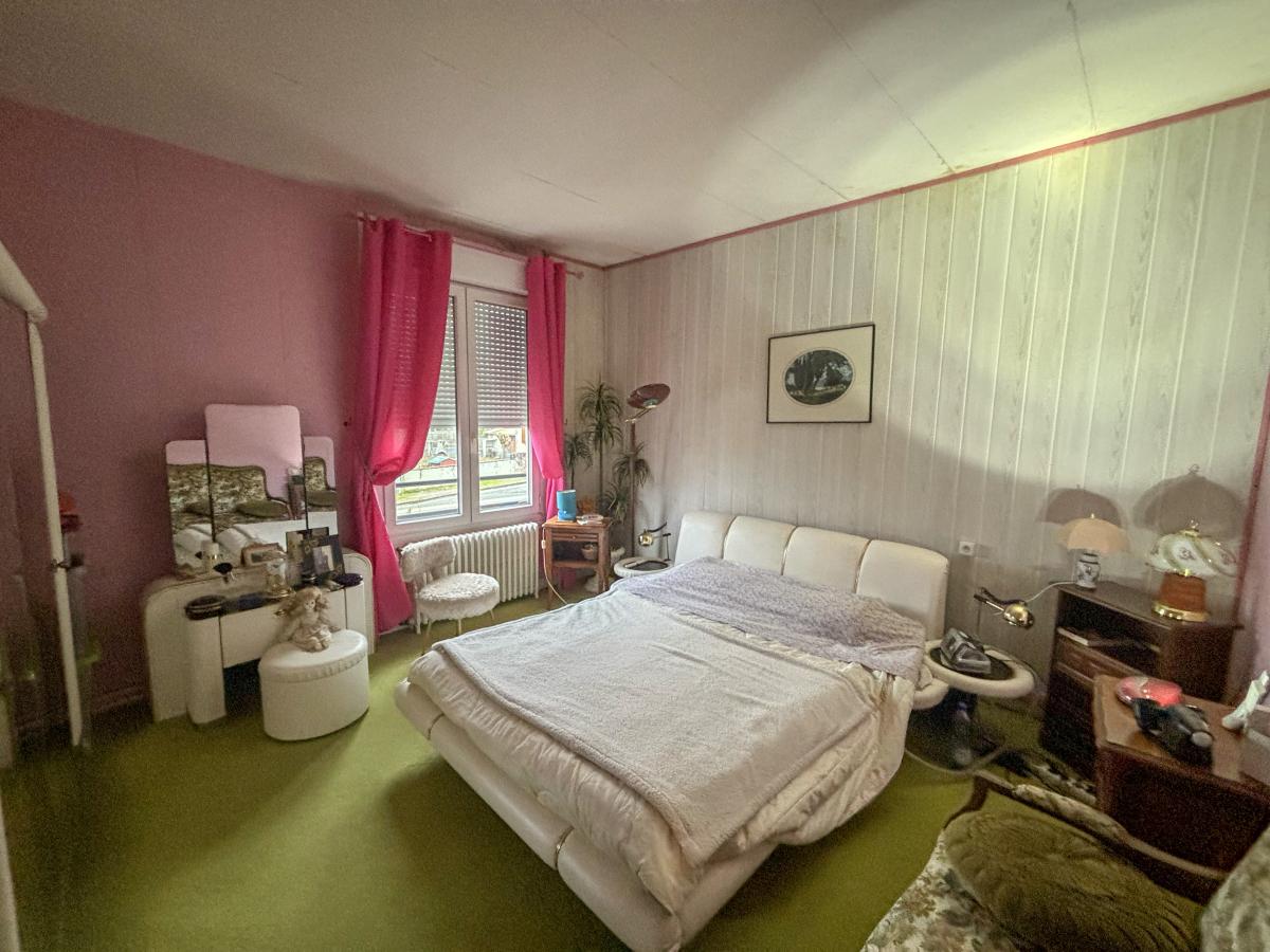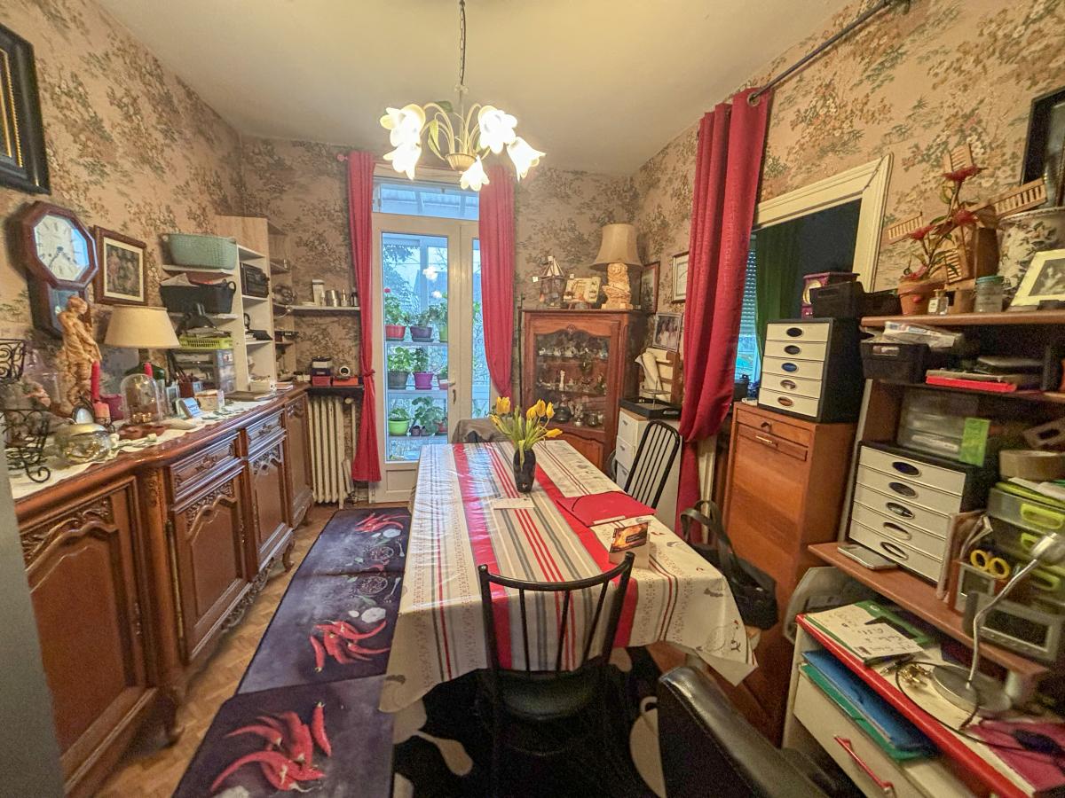 VIAGER : Maison à vendre située à Saint-Junien, d'une surface de 110 m², construite de manière semi-mitoyenne entre 1914 et 1947. Elle se compose de 6 pièces, dont 4 chambres, un séjour de 40 m², une salle d'eau et 2 WC. La maison dispose également d'une cave, d'une terrasse et d'une véranda, ainsi que d'un garage.