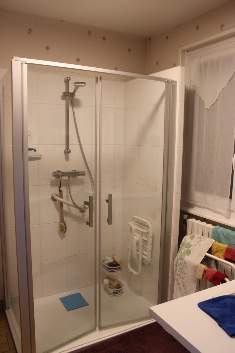 -Une Salle d'eau avec douche et placard,